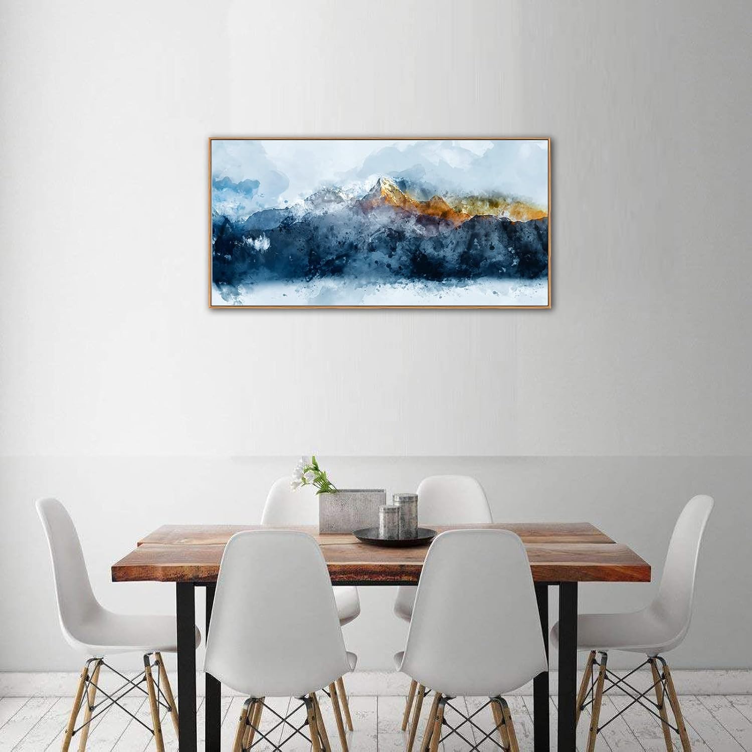 - Mystical Mountain Peaks: Transport your space to mystical heights with our Indigo Abstract Mountain Canvas Wall Art. The canvas invites you to explore the enigmatic allure of indigo-hued mountain peaks, shrouded in an air of mystery and majesty