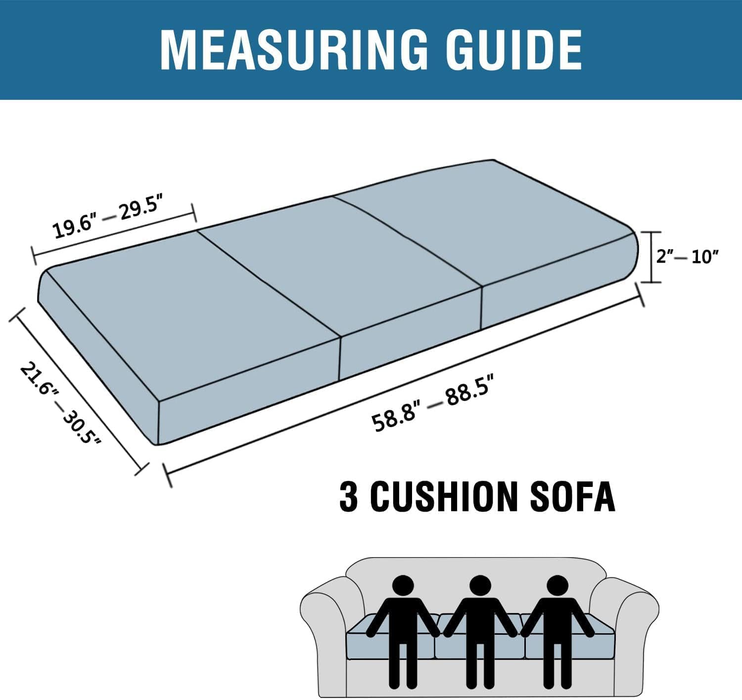 - GREAT FIT: Slipcover Set of 3. This innovated cushion slipcover is crafted from durable and soft high stretch knitted jacquard fabric. Sofa Seat Cover(fit total sitting area between 58.8-88.5 inches). Feature one-size-fits-most, kindly measure before ordering. Suitable for both T cushion and Box cushion styles
