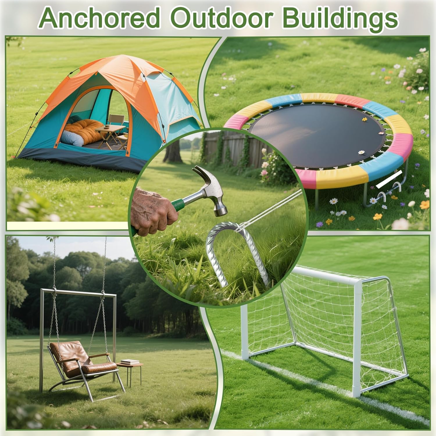 - Wide Application: Wide Application: Heavy duty yard stakes fence stakes for ground gardening. Tie down stakes for outdoor decorations. Can use stakes heavy duty to hold down the trampolines, swing