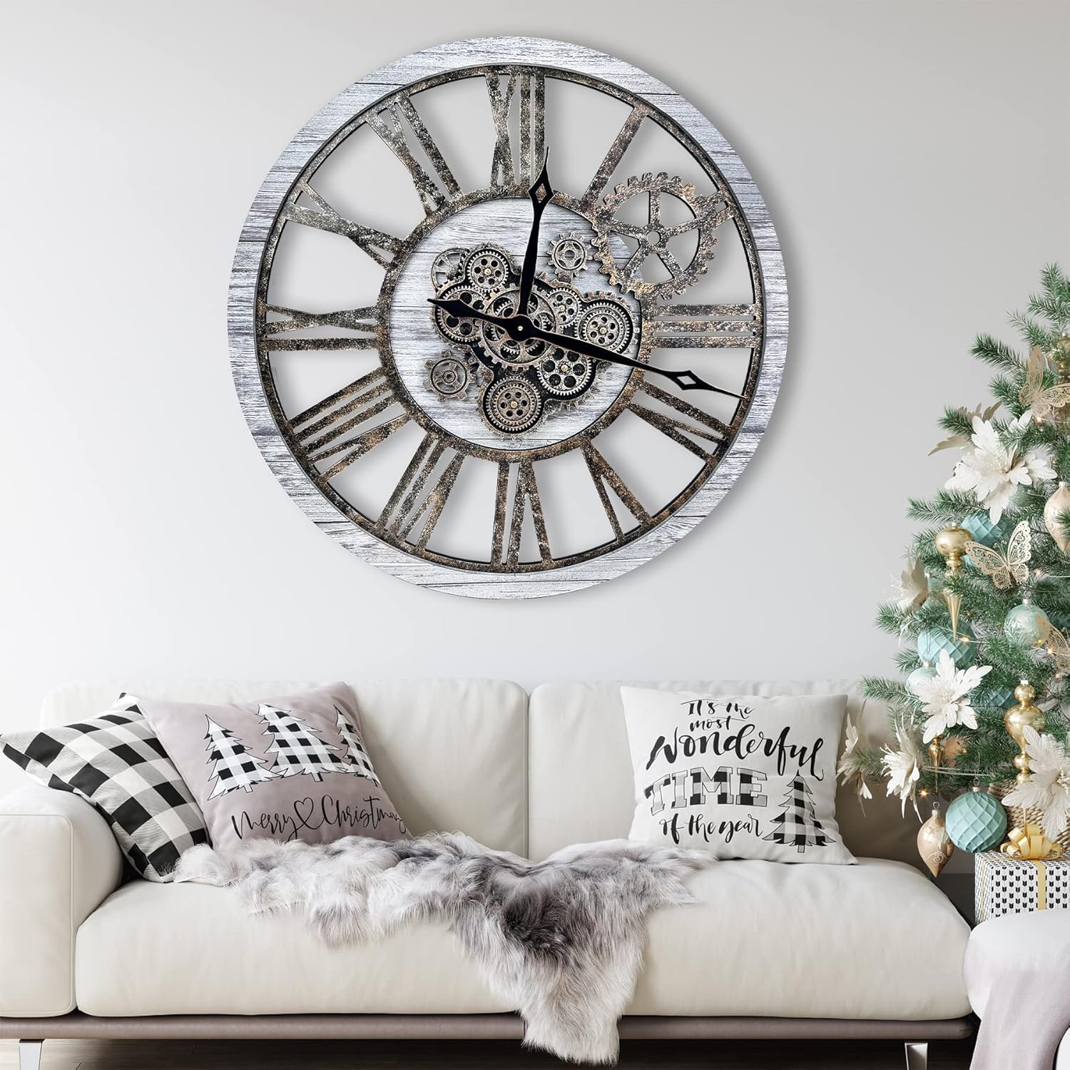 - WIDE APPLICATIONS: Oversized rustic wall clock is not only a timepiece, but also a piece of artwork, greatly adding charm to a room, like living room, farmhouse, fireplace, bedroom or dining room, studio, gallery, loft, cafe, bar, club, etc. Decorative wall clock will become an instant conversational piece for the moving gears and how cool it looks. Also awesome gifts for families or friends