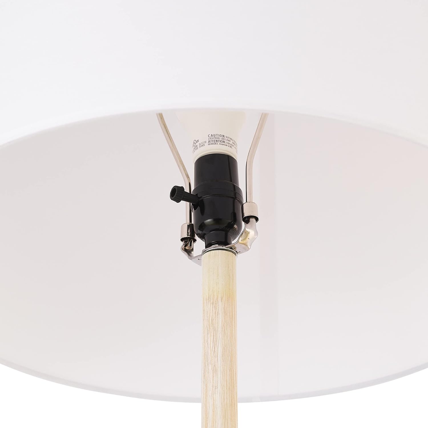 - JAPANDI STYLE DESIGN: Faux wood finish and white cotton drum shade bring nature-inspired warmth and minimalist appeal to your interiors.