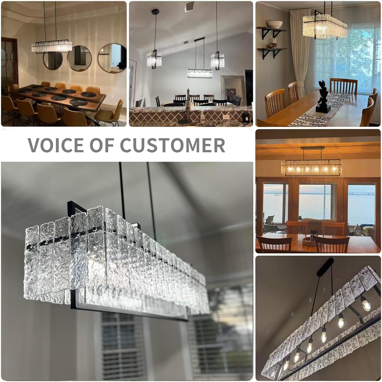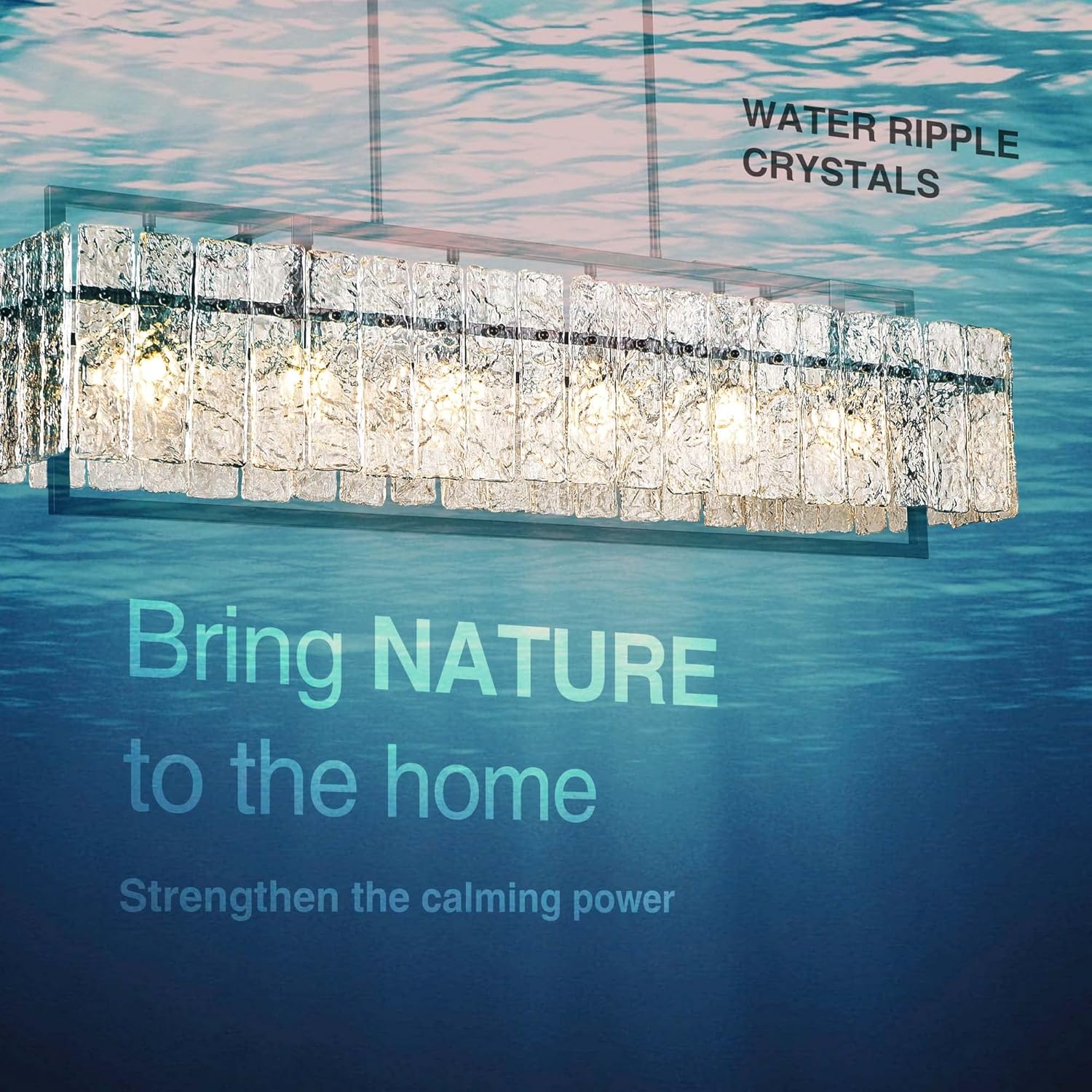 - [BRING NATURE HOME ]: This gorgeous Chandelier with 100% handcrafted water ripple glass. The Nature-inspired accessories can Strengthen the calming power of your home. Each glass is unique, mimicking the calming, restorative ambiance of the outdoors. Black matt coating metal frame is very friendly to a variety of scenarios.