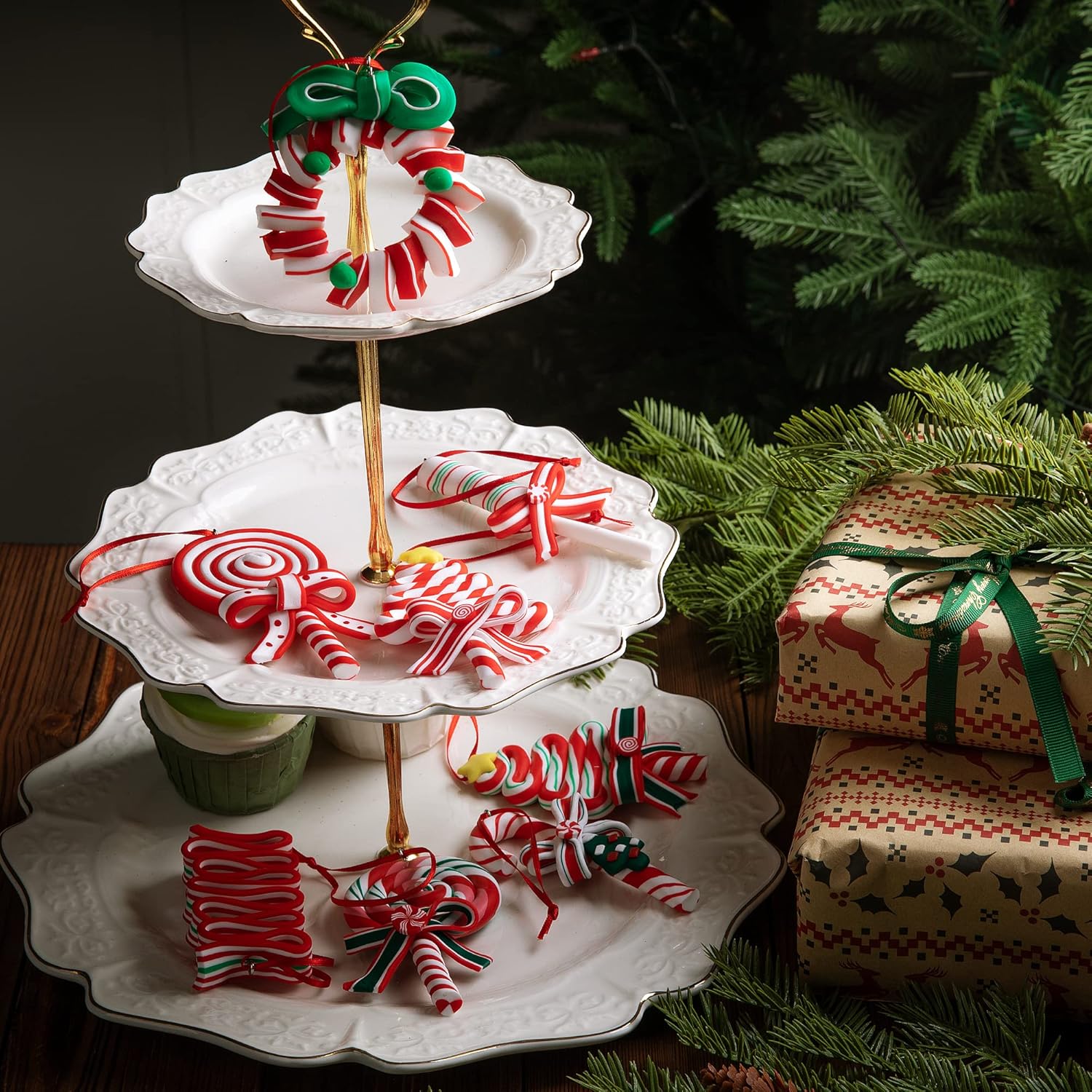 - Material :These Christmas candy ornaments are mainly made of polymer clay,reliable to use, not easy to fade,can use for a long time.If you smell the product when you open it, donโt worry, it will disappear after a period of time.
