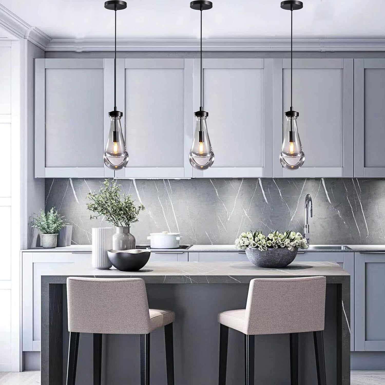 - 【Bulb included】 Our raindrop light pendants for kitchen island comes with an E12 bulb, no need for you to buy extra, very convenient for you to install and use. 3000k warm color temperature light can make your house more warm and beautiful.