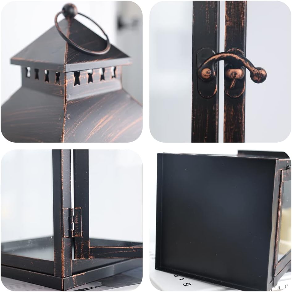 - Suitable for Most Outdoor Scenes——The set of 2 Large Bronze vintage candle lantern is perfect for outdoor use. The metal material can withstand wind and rain, while the high-quality glass prevents rainwater from getting in and allows you to see the bright, flickering candles, creating a fantastic atmosphere.