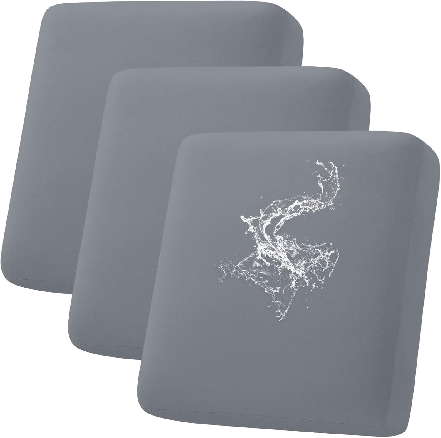 hyha Waterproof Couch Cushion Covers, Stretch Sofa Couch Seat Slipcover for Dog Washable, Non-Slip Waterproof Outdoor Cushion Covers for Patio Furniture Replacement (3 Pieces, Dark Grey)
