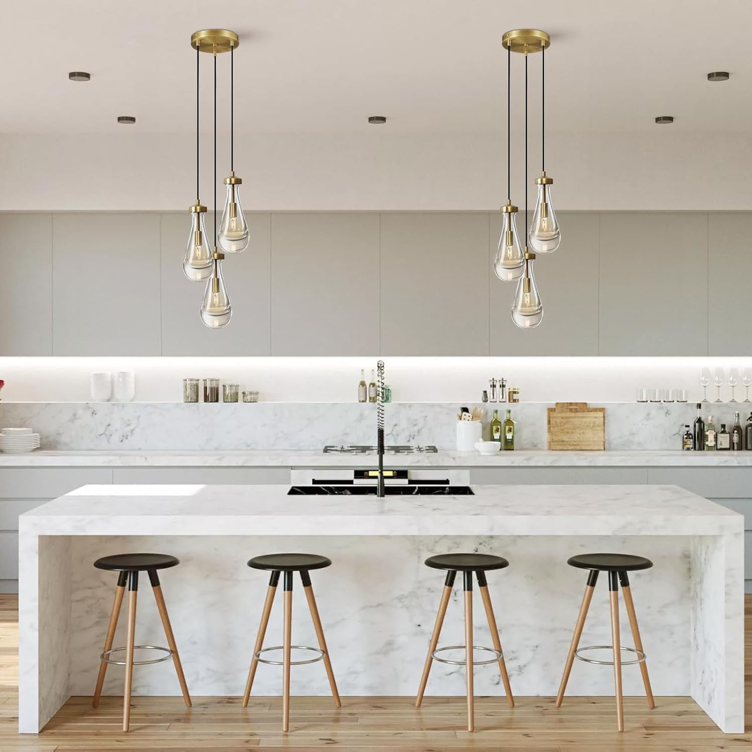 - Provide 2-Year Promise: Brass 3-Light Raindrop Cluster Pendant Light For Your Kitchen Island, Foyer, Hallway.