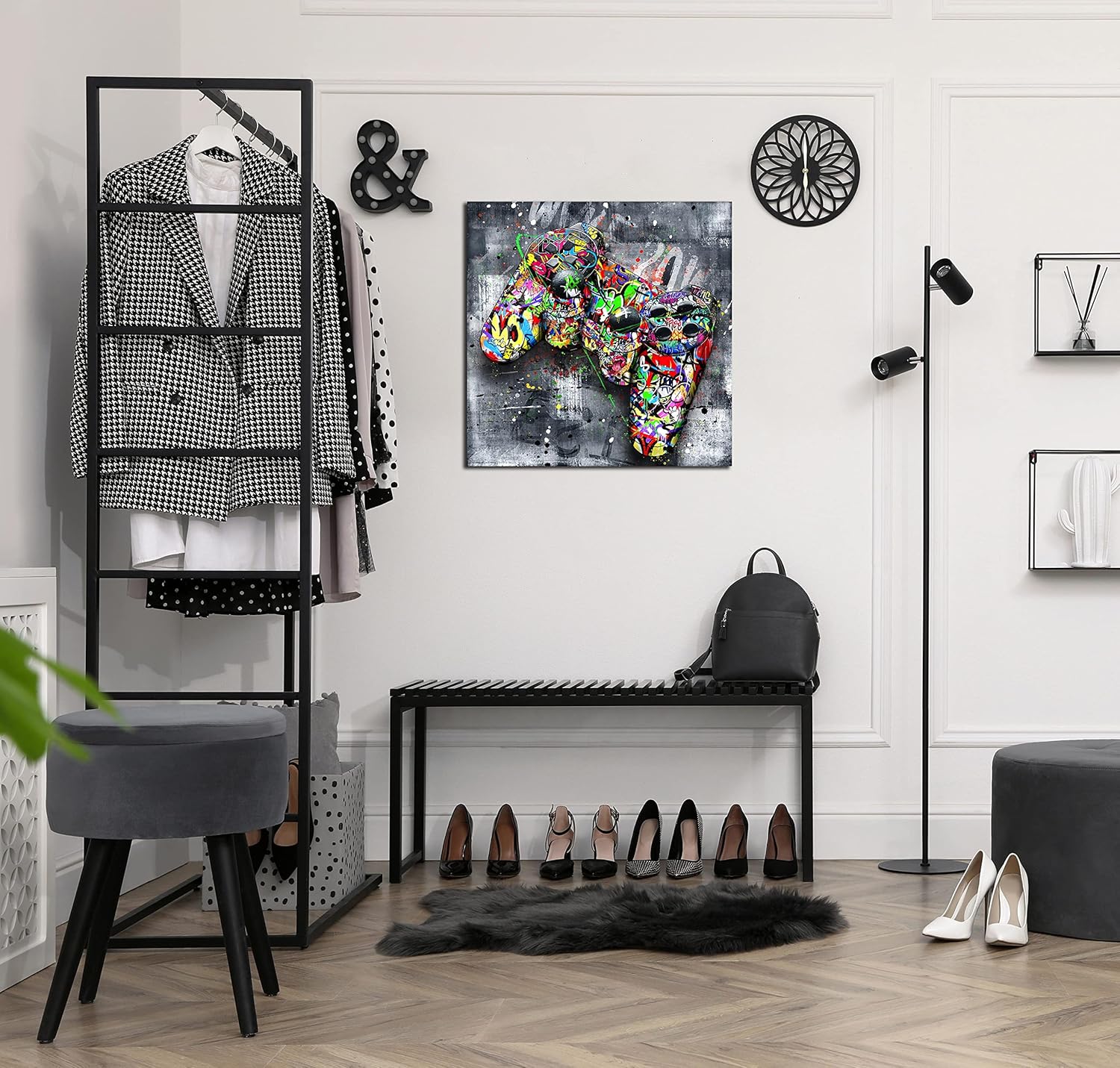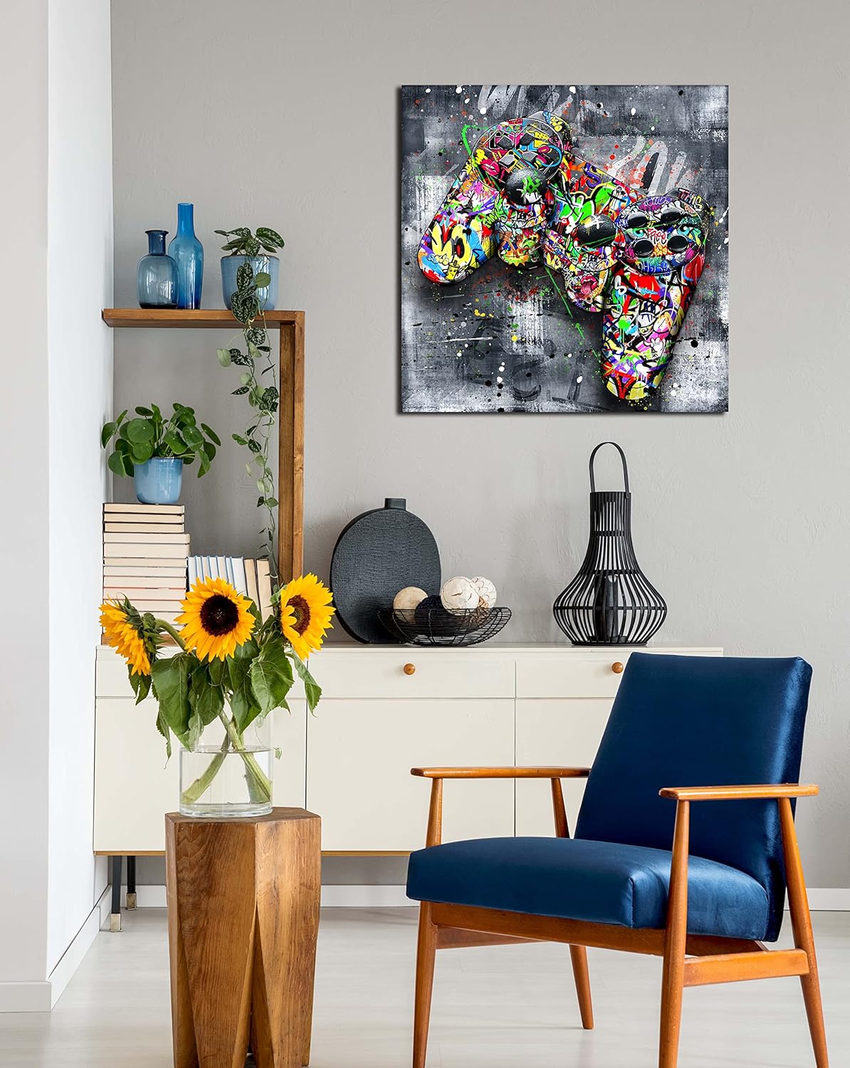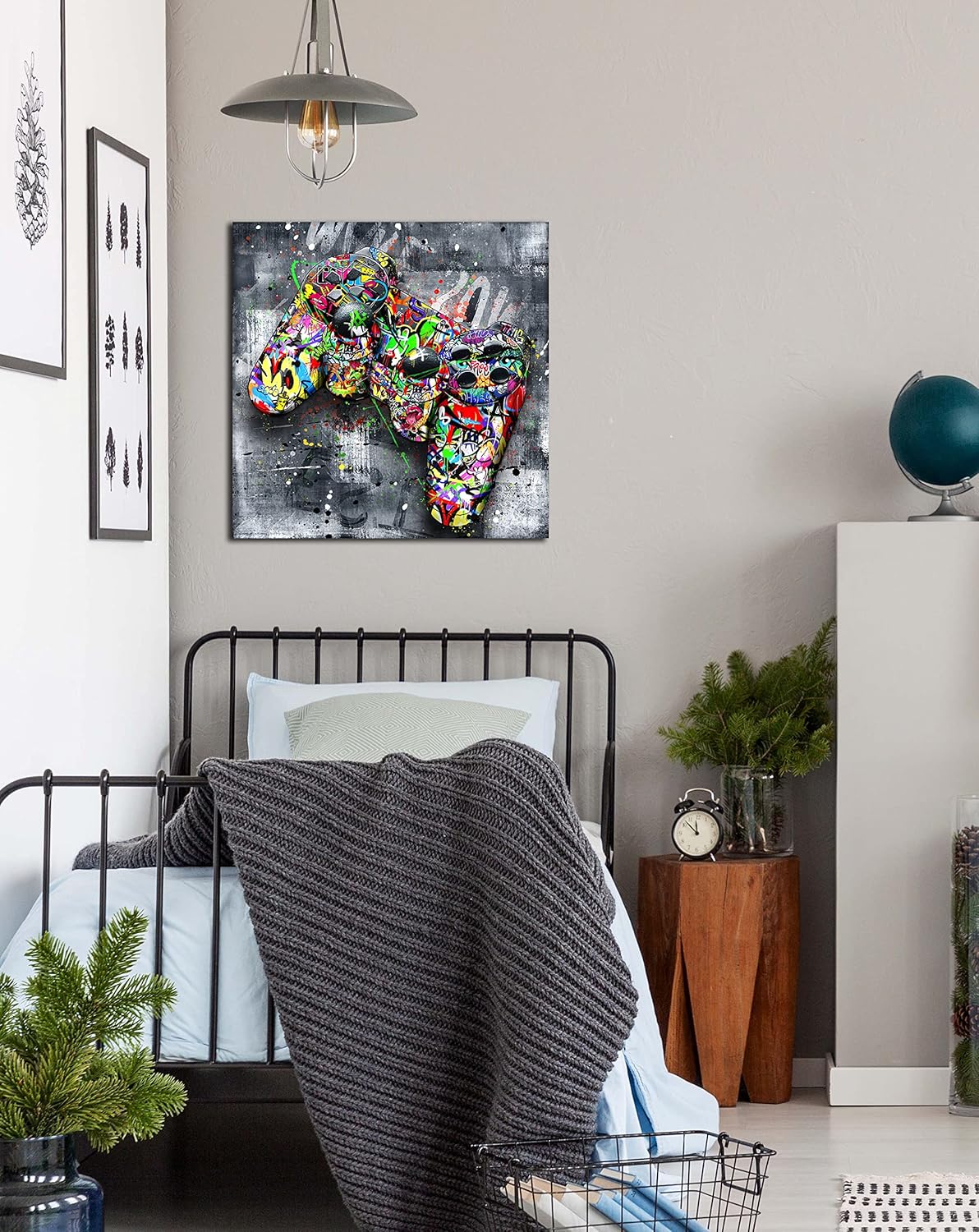 - 【STYLISH CANVAS ART DESIGN】 Looks exactly as pictured,Good idea for home interior walls decor such as wall art for bedroom,guest room, hotel, dining room wall decor and others. It’s a great gift ideal to your friends.Graffiti gaming wall art for living room large size room decor for teen boys abstract canvas wall art