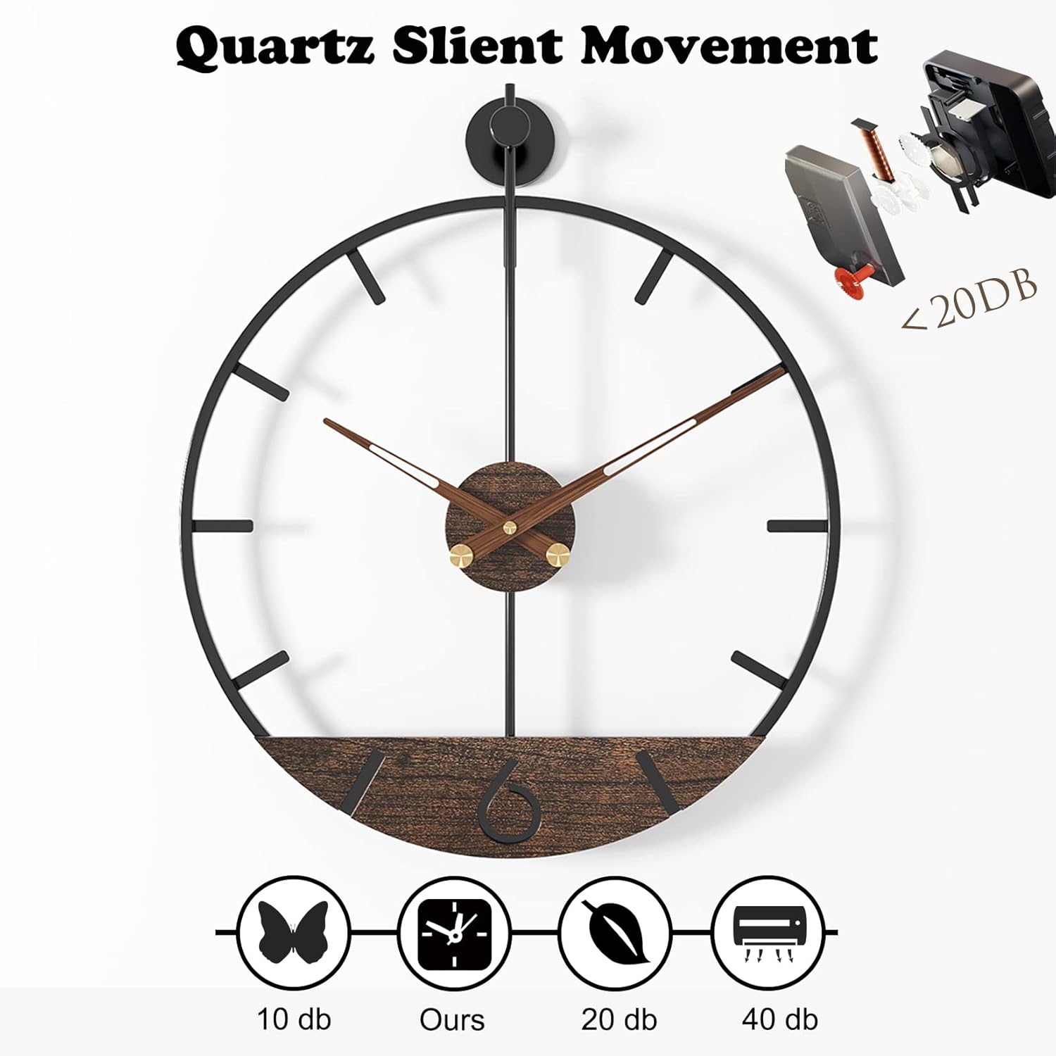 - Completely Silent & Easy to Install: High quality wall clock movement provides accurate time and complete silence environment, energy-saving, silent and non-ticking. Easy to Hang it on the wall with the attached hook