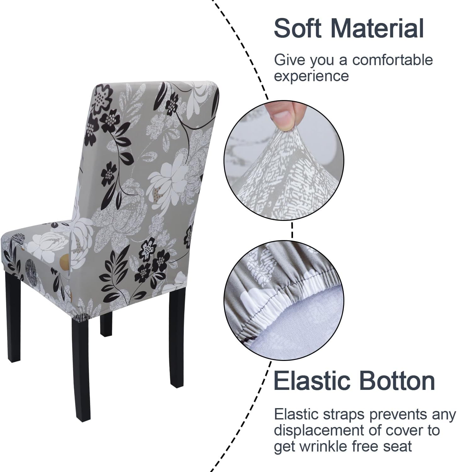 - 【High Quality of Chair Cover】- JQinHome dining room chair coversare made of durable and high persistence polyester and stretchy spandex fabric, soft, comfortable and wrinkle resistant, no ironing required; Stretchable Material,stretch that recovers quickly,secure fit with sewn-in elastic hem.