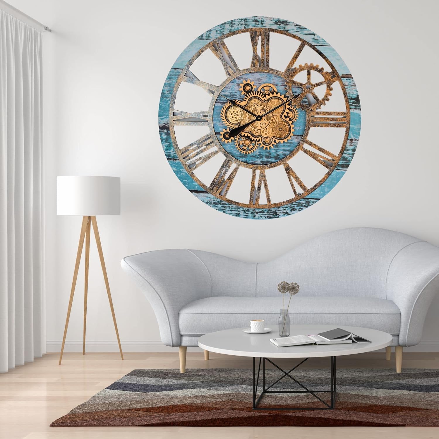 The Gears Clock 36'' Inch Real Moving Gear Wall Clock Vintage Industrial Oversized Rustic Farmhouse (Aqua Green)