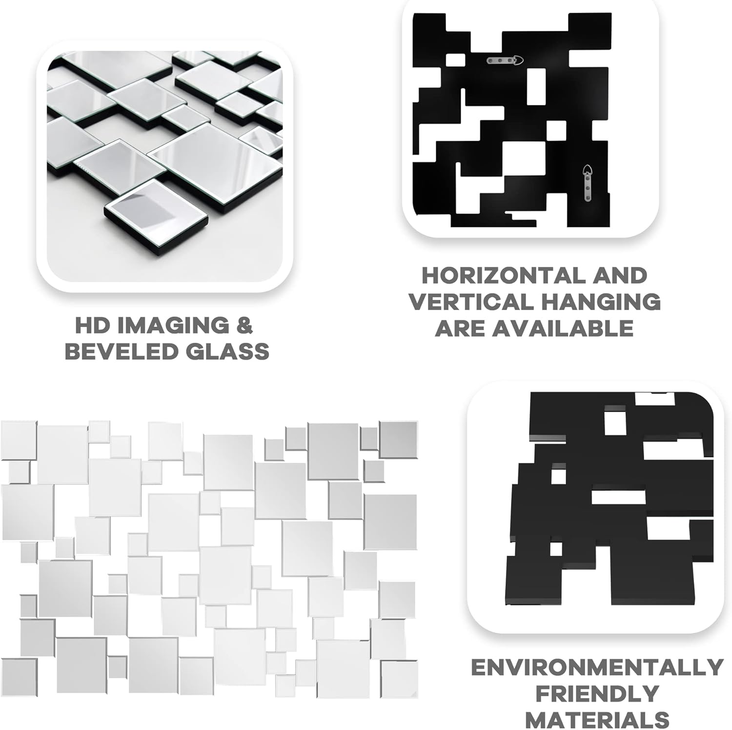 - PRODUCT SIZE: 48X32 inches, Modern Geometric Wall Mirror featuring an intricate arrangement of interlocking square mirrors, The sleek, frameless design adds depth and dimension, reflecting light to brighten dark corners and visually expand your space.