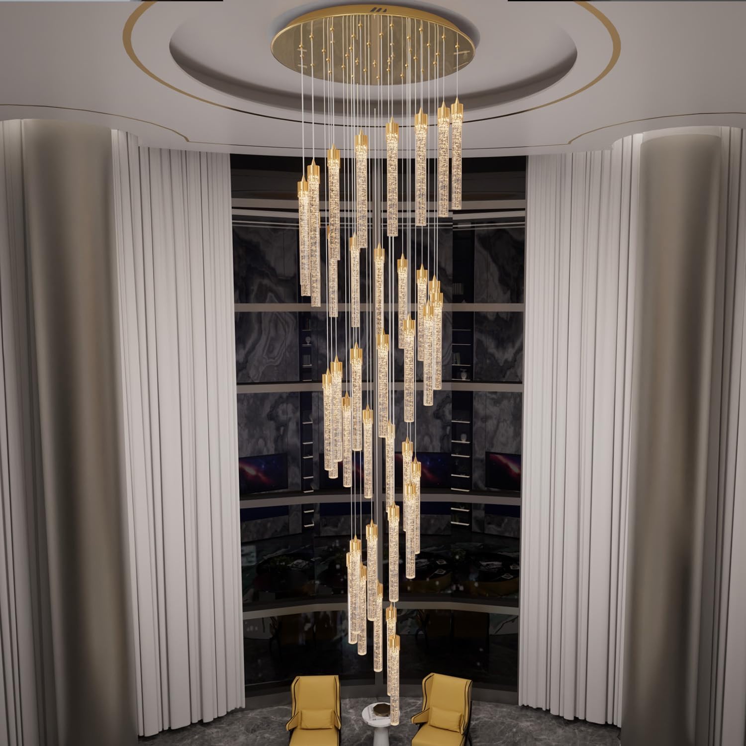 - 【Chandelier's size】 The size is D32" * H177", The pendant rope is adjustable, allowing for a minimum height of 20".Suitable for high-ceiling living rooms, foyers, entryways, dining rooms, stairwells,angled ceiling etc