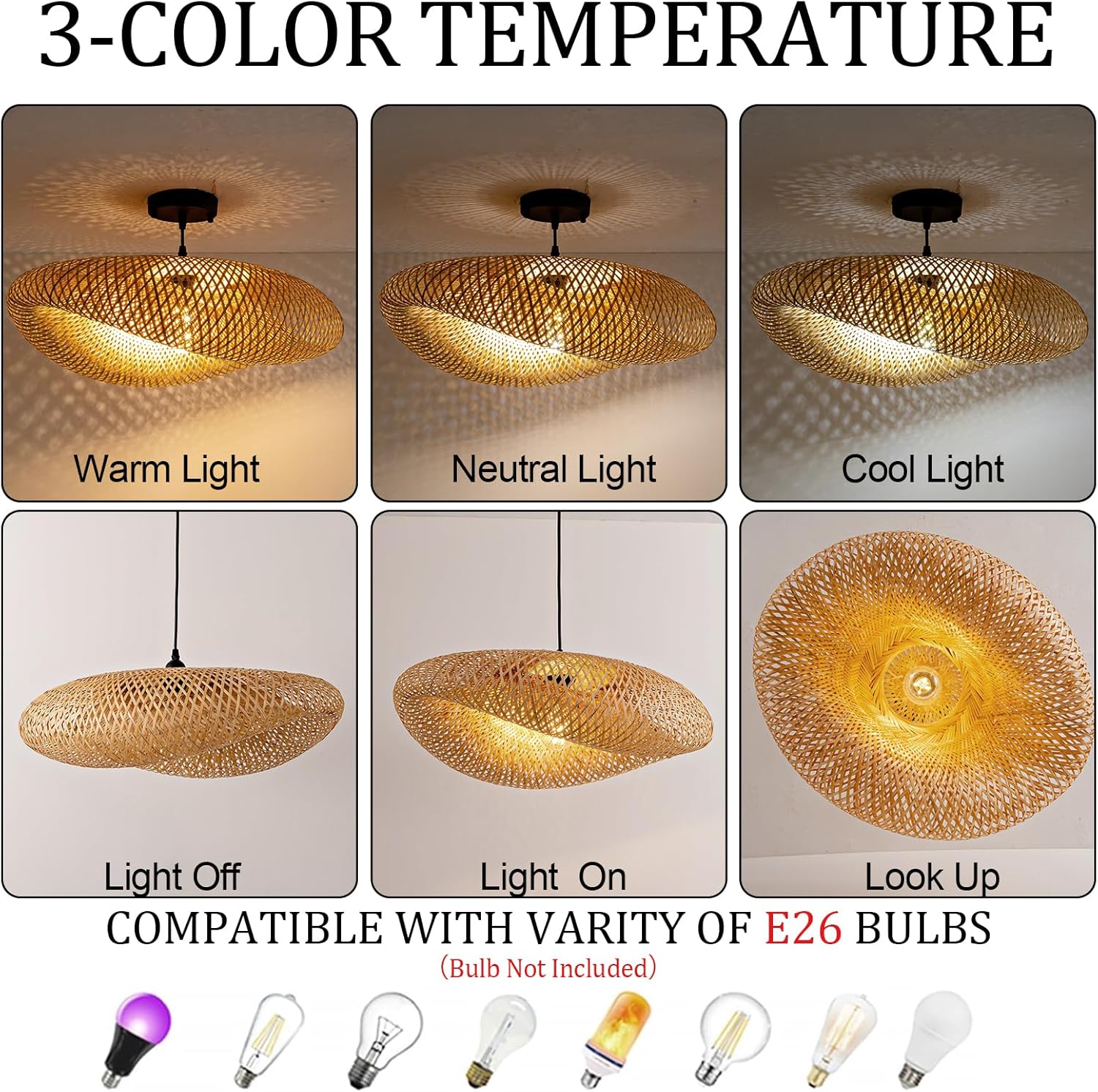 - Notes 1. Natural Materials:Our products are made of high-quality bamboo, rattan, and straw rope. Since these materials are natural materials, the following conditions may exist: bamboo knots, tiny burrs, slight color differences, micro scars, etc. During the use of lamps, the color will change slightly over time, which is a natural change