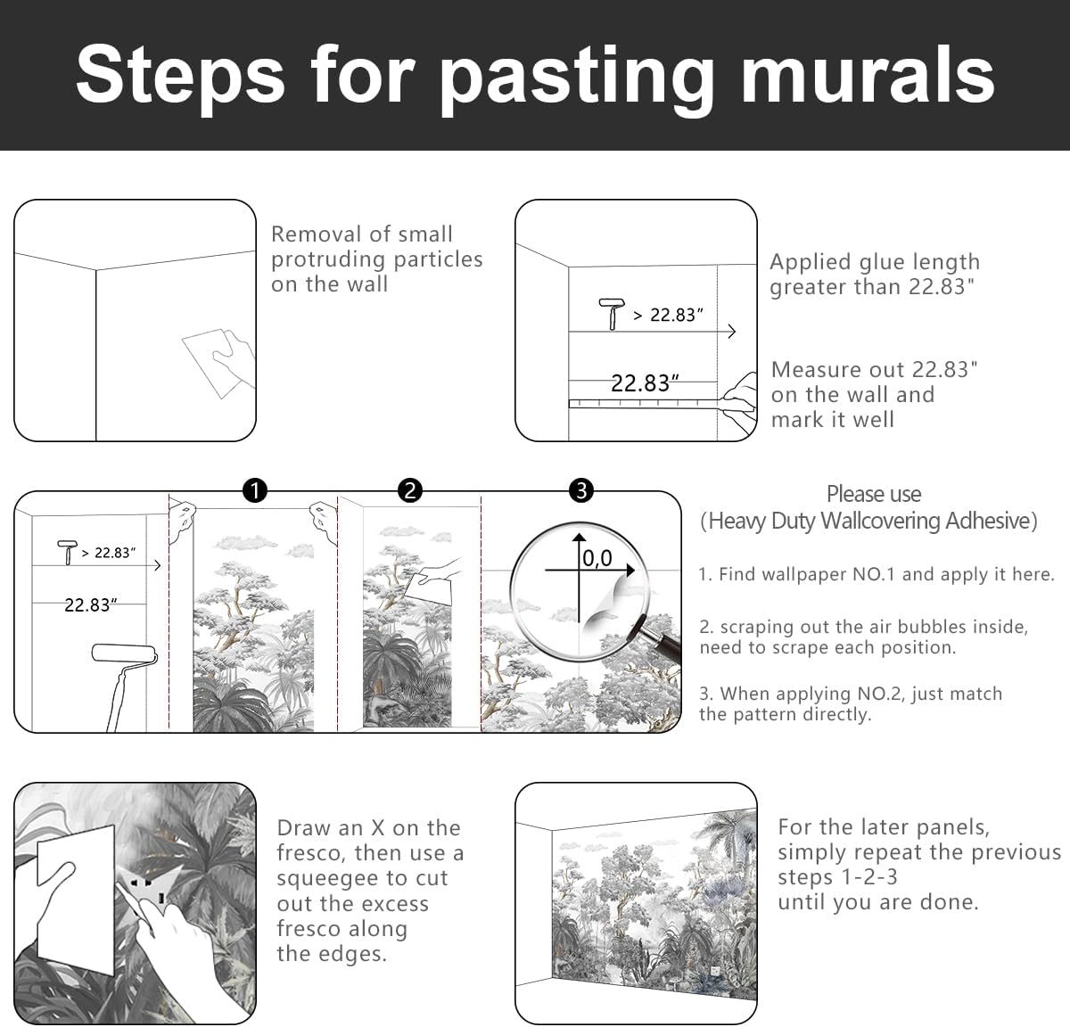 - 💕Wallpaper installation can refer to our main picture, the package will also be placed inside the installation instructions.