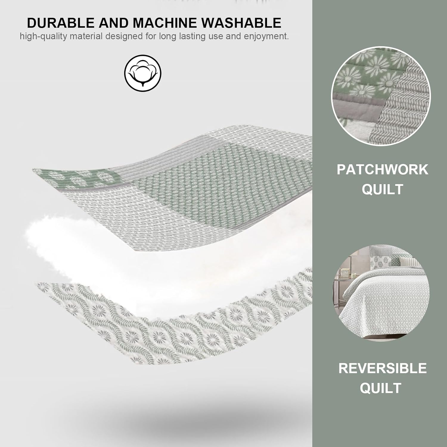 - [100% Cotton Quilt] - 100% natural cotton quilt set,healthier and more breathable.Soft,skin-friendly and durable.