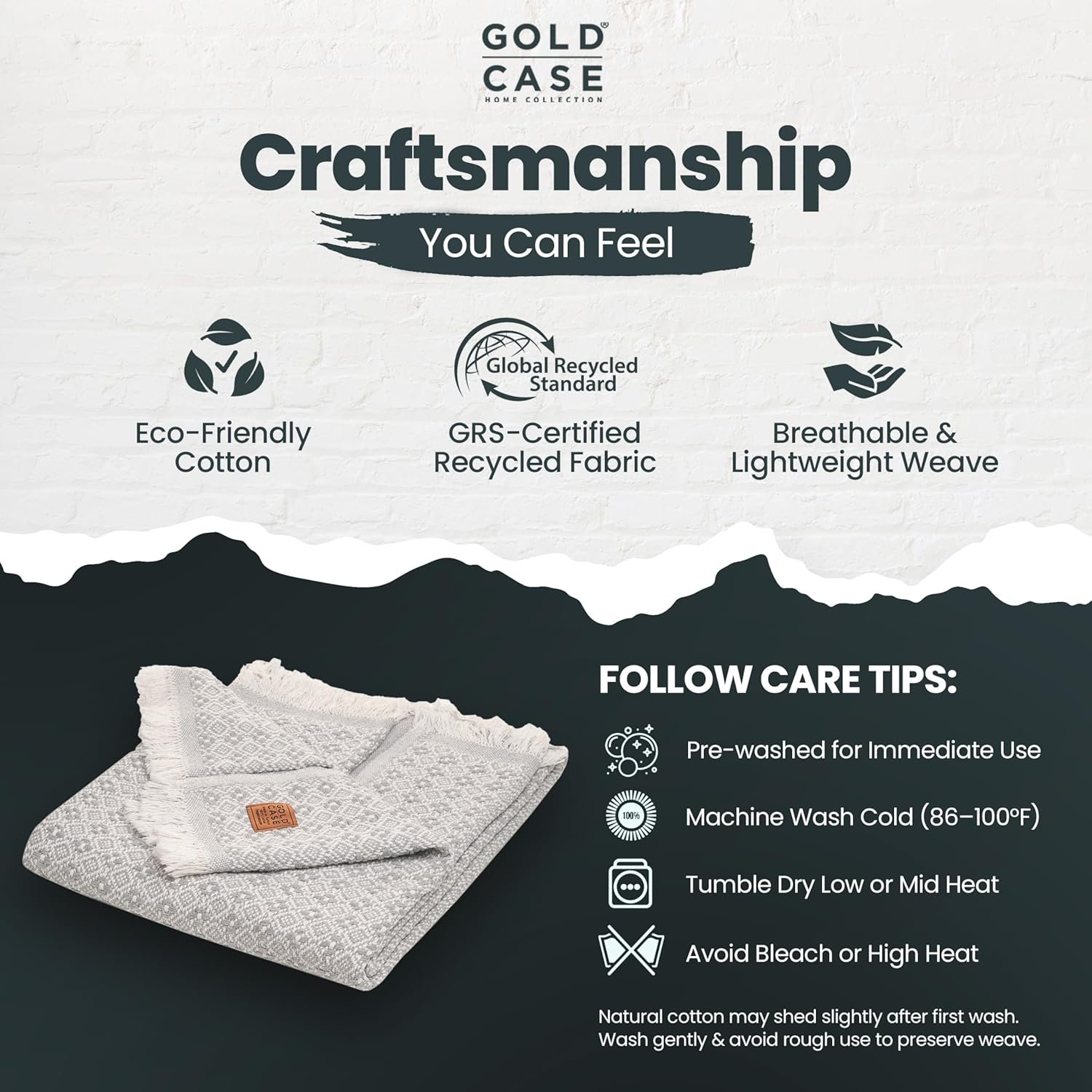 Gold Case Throw Blanket for Couch – 100% Recycled Turkish Cotton Blankets & Throws – Elegant Decorative Throw Blankets for Living Room Sofa – Woven Throws for Couch – Retro Grey – 50x60