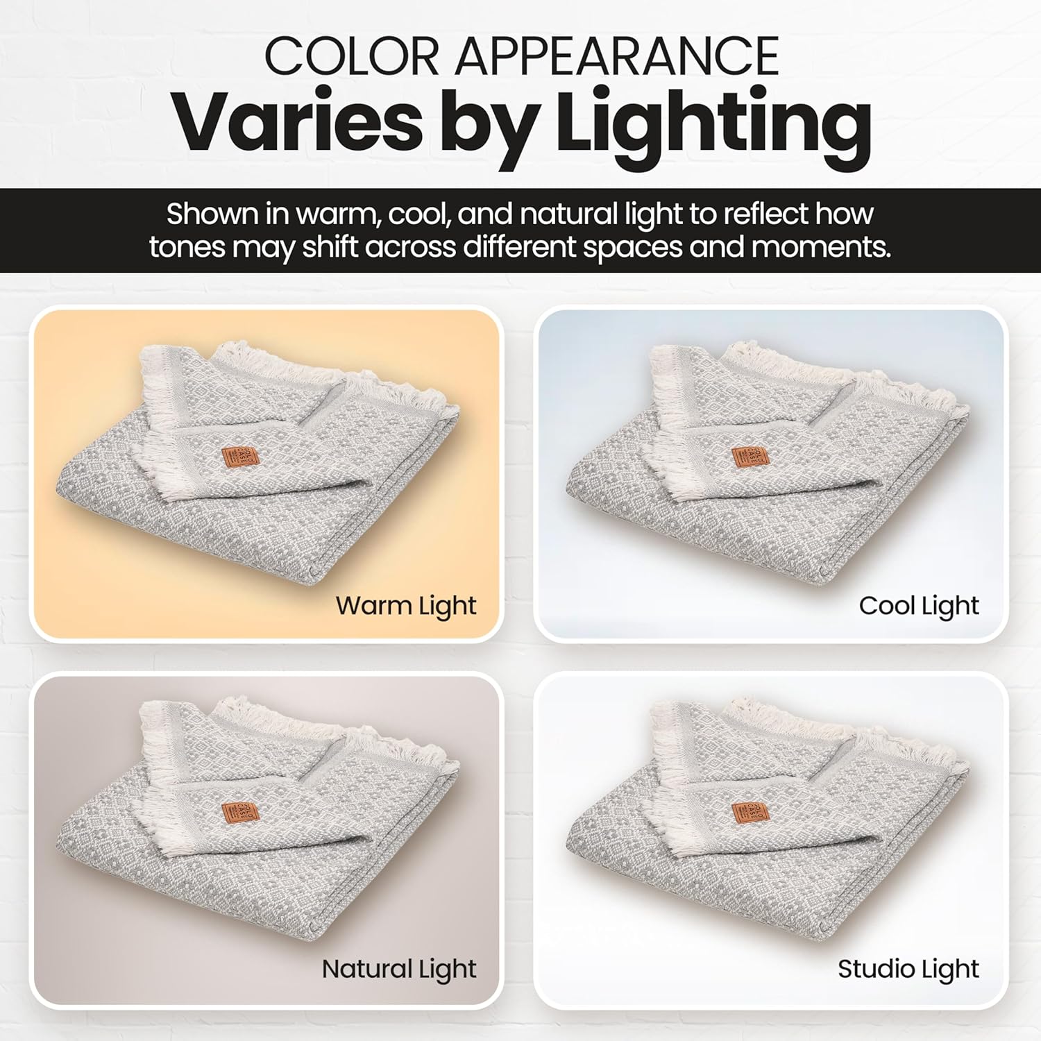 - LIGHTWEIGHT LAYERS FOR RELAXED MOMENTS: Woven from 100% recycled Turkish cotton, this breathable and cute throw blanket adds a soft, textured touch to your space; made for layering on the couch, tossing over your shoulders, or adding a laid-back look to your decor