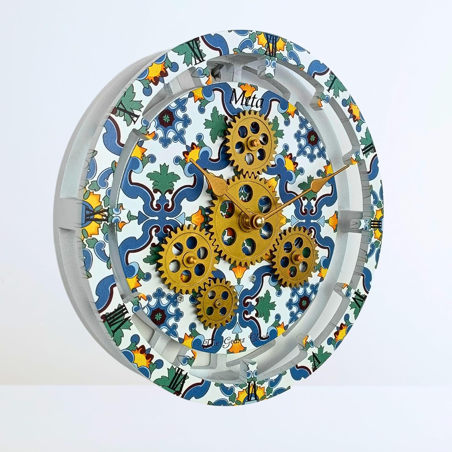 - Wall Clock Italy Collection with Real Moving Gears is an Art Timepiece inspired by the Famous Amalfi coast Tiles in Italy