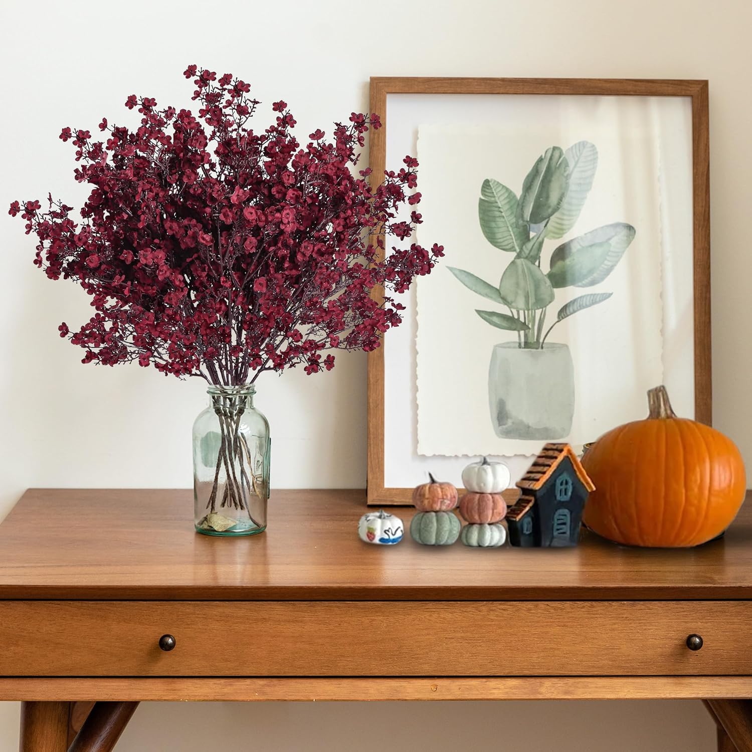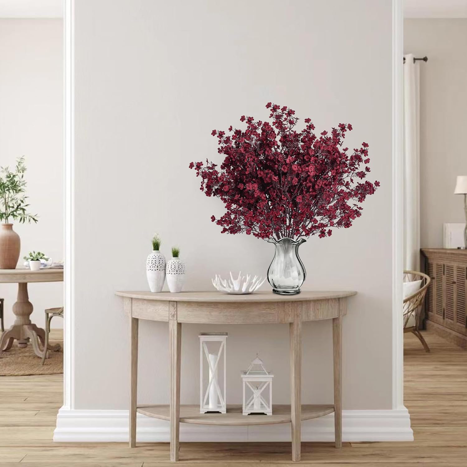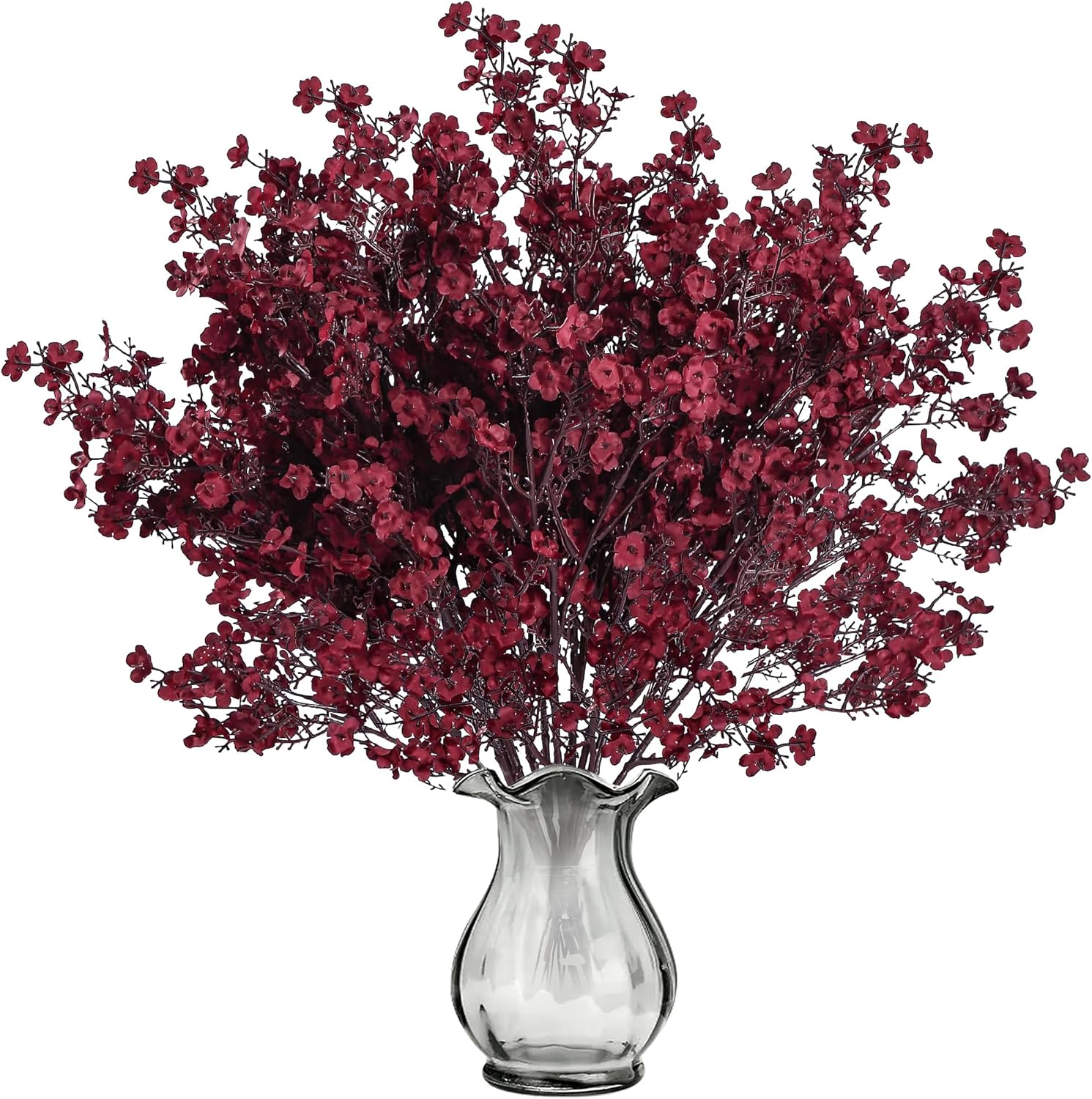 Sggvecsy 15 Pcs Babys Breath Artificial Flowers Gypsophila Bouquets Bulk Real Touch Fake Silk Flowers for Home DIY Floral Arrangement Table Centerpiece Fall Thanksgiving Autumn Decoration (Burgundy)