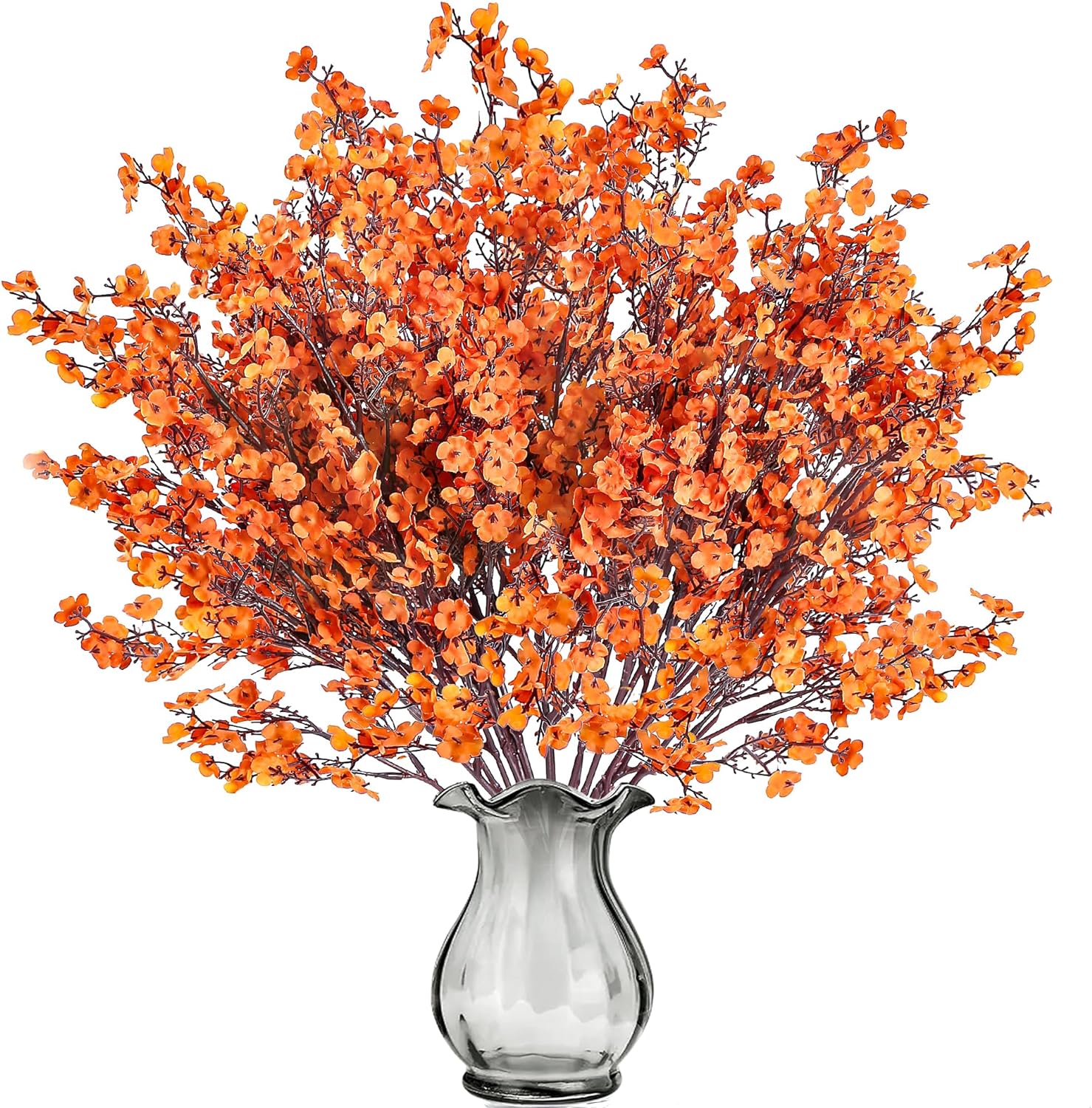 Sggvecsy 15 Pcs Babys Breath Artificial Flowers Gypsophila Bouquets Bulk Real Touch Fake Silk Flowers for Home DIY Floral Arrangement Table Centerpiece Fall Autumn Decoration (Fall Orange)