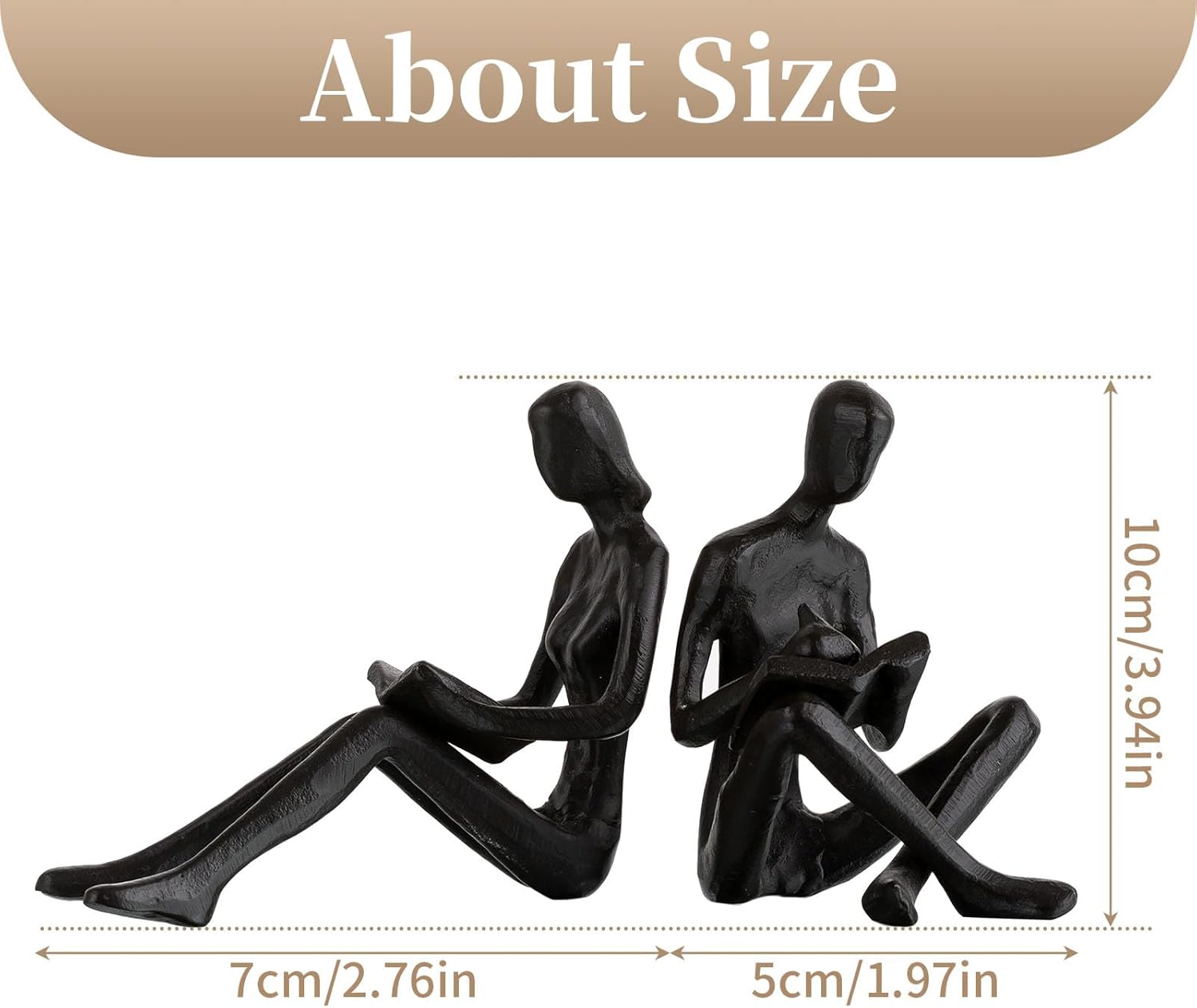 - HEAVY DUTY BOOKEND - Add this lovely reading couple to your modern design. Each book end is sturdy and durable, made of cast iron. They'll prevent your books from sliding. Also make the shelves more aesthetic. This metal bookend can also be used as paperweight or statuettes. Suitable for many scenarios.