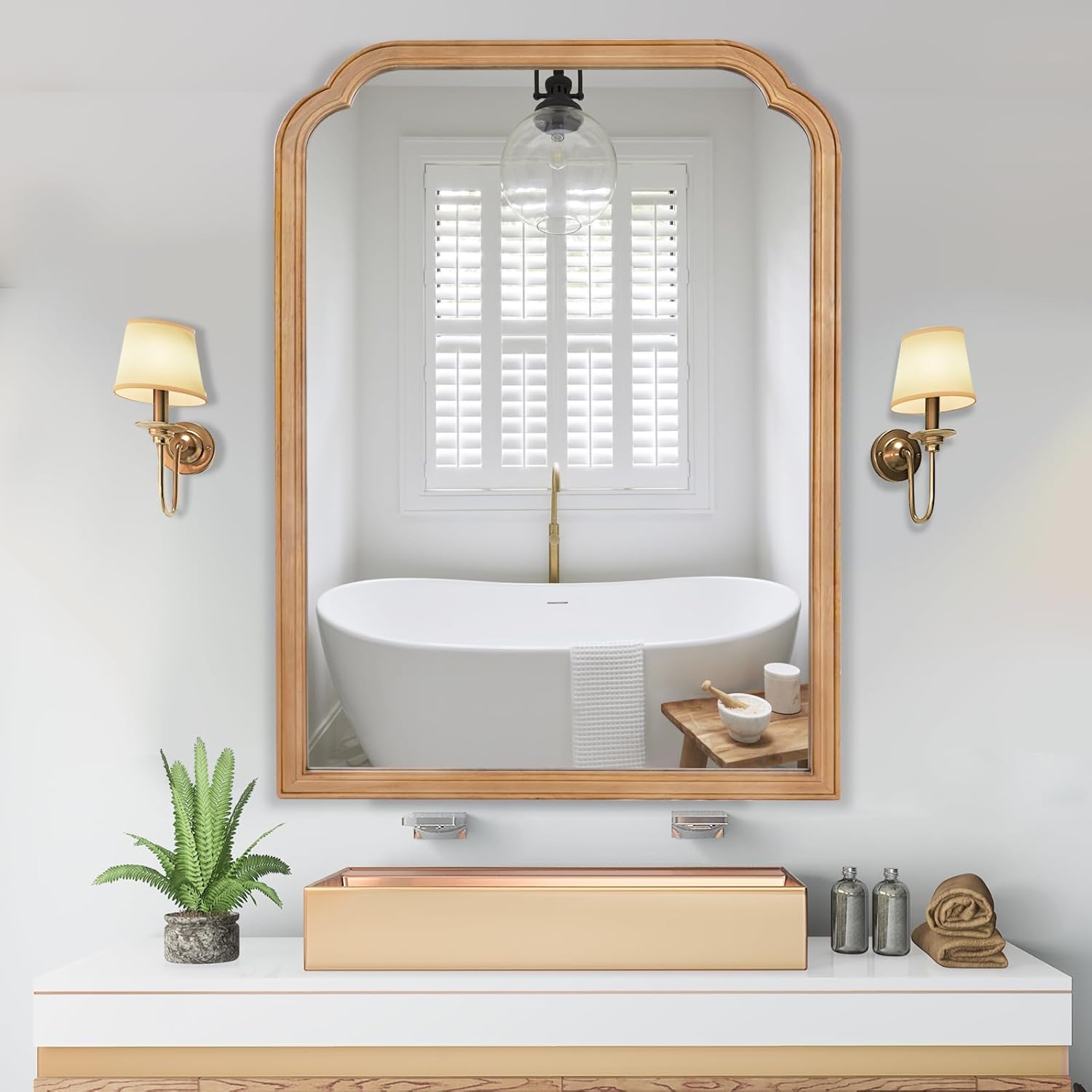 WallBeyond 30" x 40" Wood Bathroom Mirror for Wall Mounted, Rustic Rounded Corner Vanity Mirror for Entryway, Living Room or Bedroom Home Decorative [30" x 40" Natural Color]
