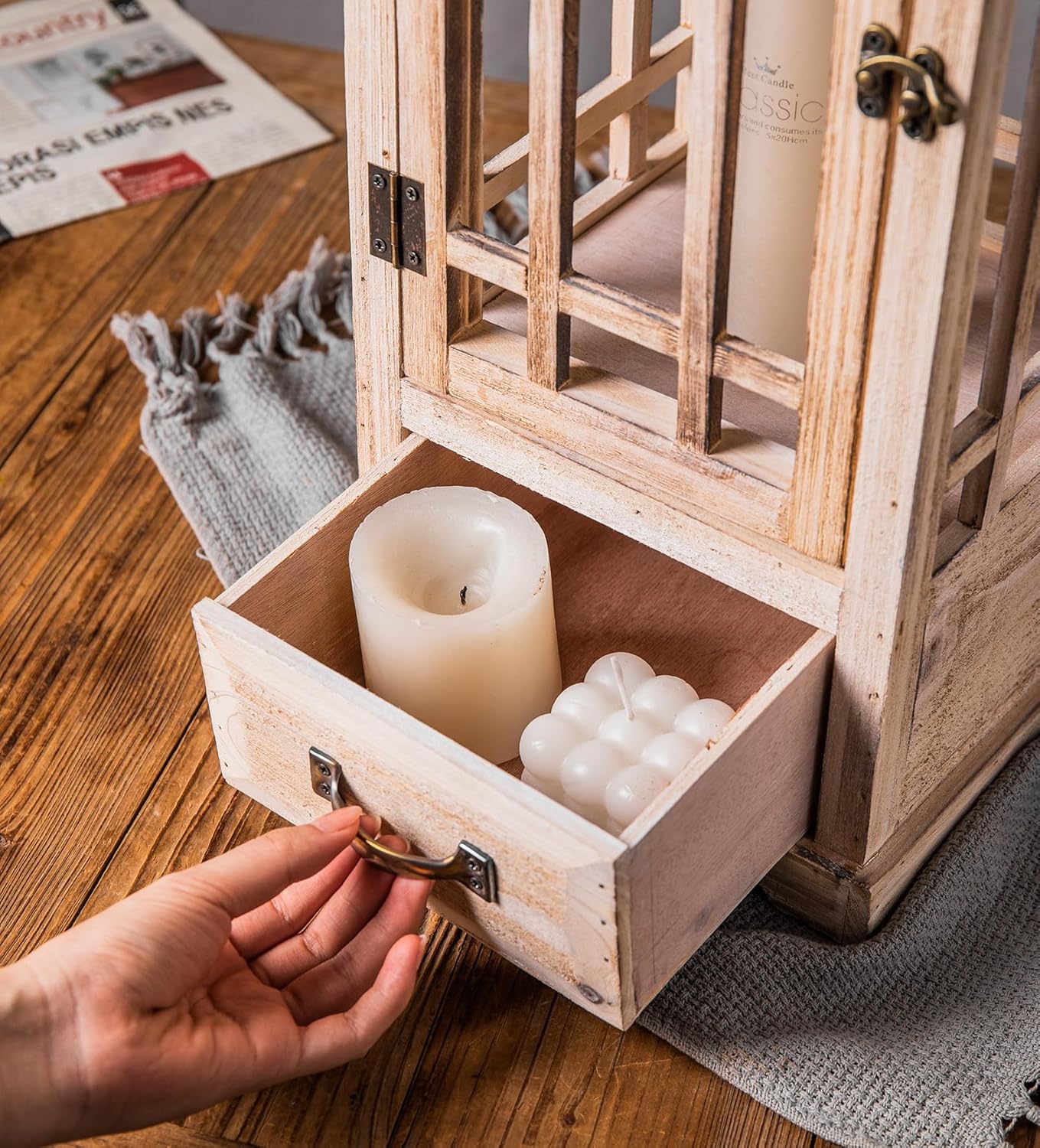 - VINTAGE RUSTIC CHARM – Featuring a simple handy drawer, this country style wooden lantern set not only serves as convenient storage to organize any clutter but also offers an unique modern farmhouse appearance to your home.