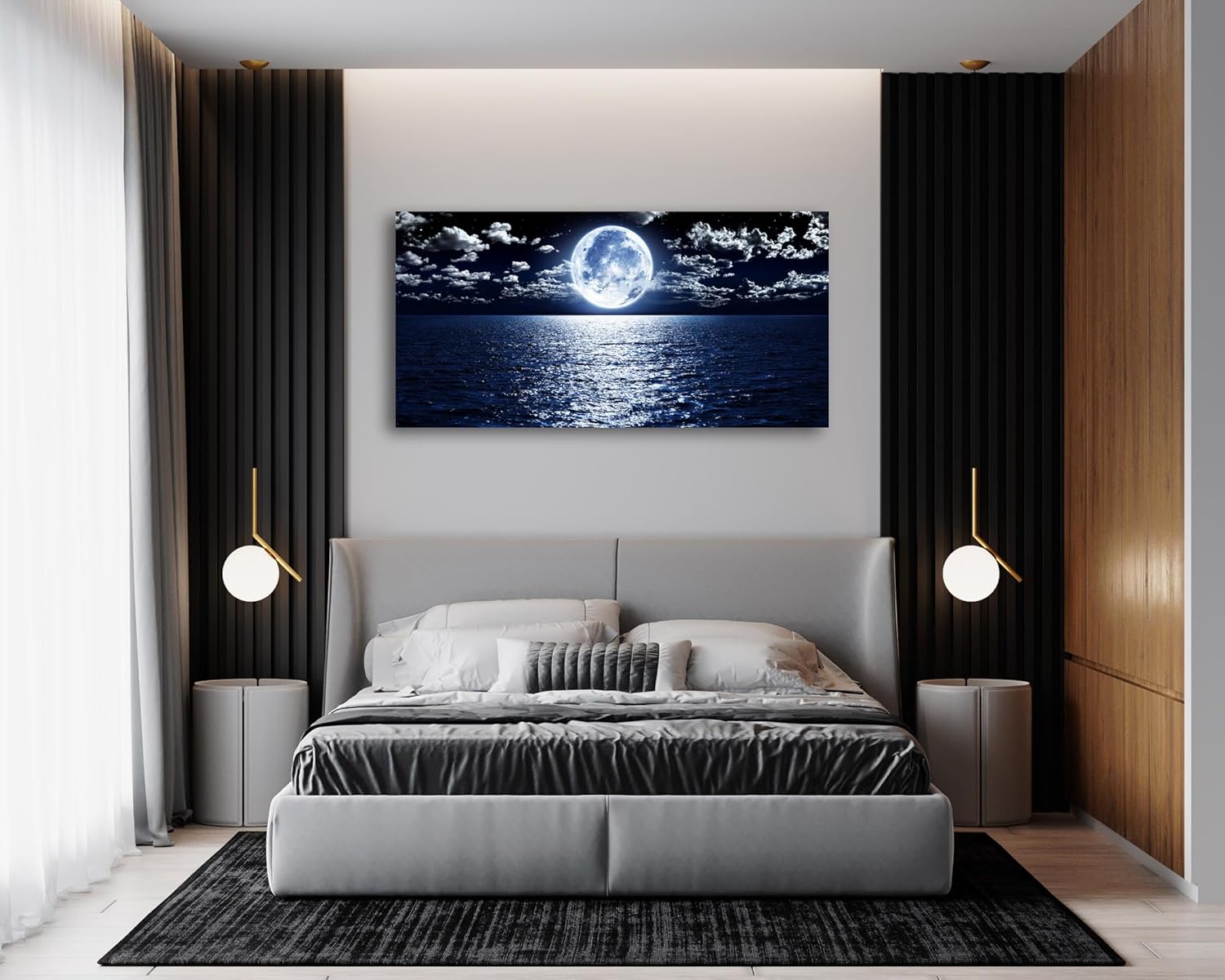 Cao Gen Decor Art S06962 Wall Art Canvas Prints Moon Sea Ocean Landscape 1 Panels Full Moon in Cloud Pictures Paintings Stretched and Framed for Living Room Bedroom Kicthen Office Artwork 24x48inch