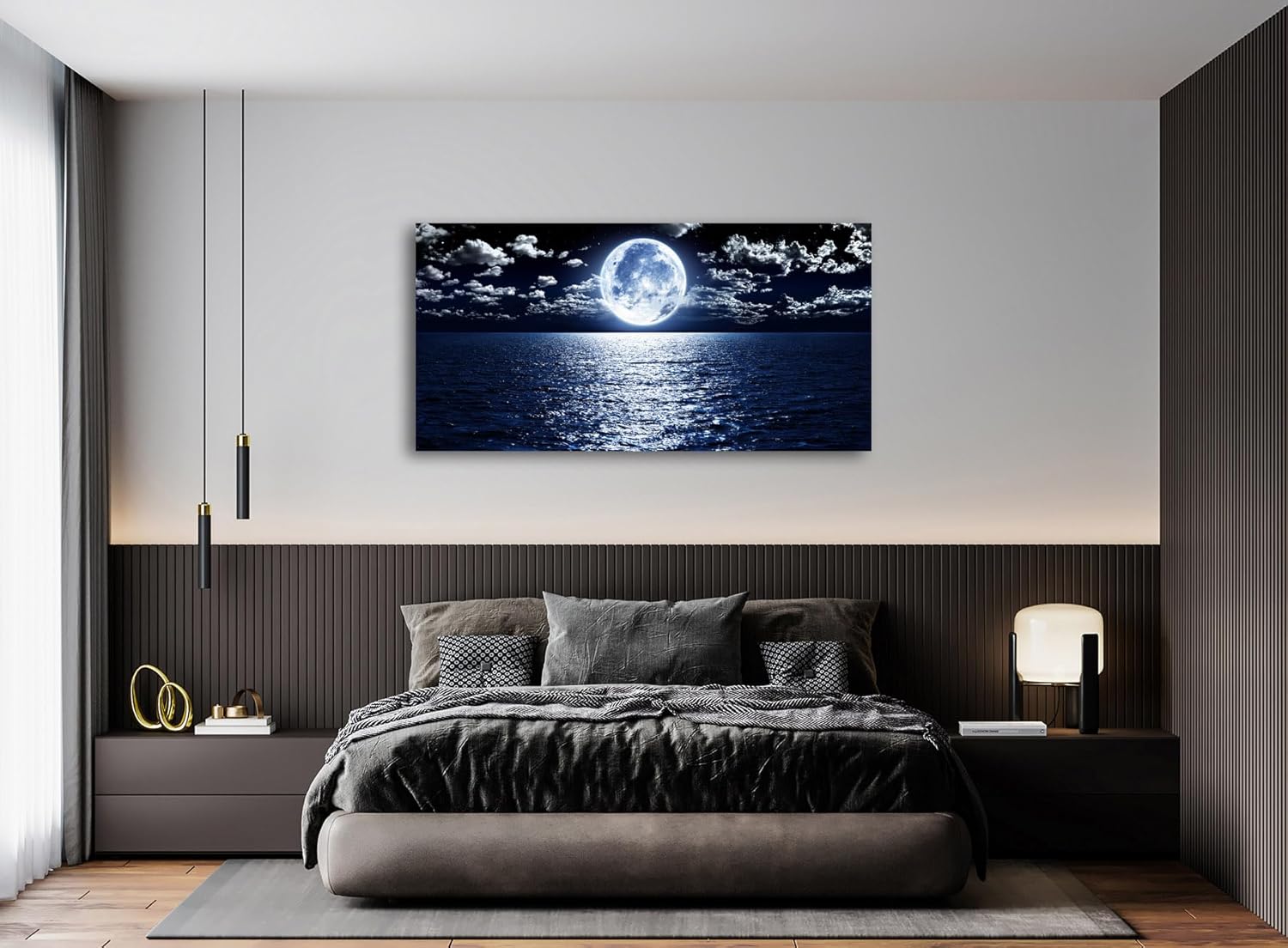 Cao Gen Decor Art S06975 Wall Art Canvas Prints Moon Sea Ocean Landscape 1 Panels Full Moon in Cloud Pictures Paintings Stretched and Framed for Living Room Bedroom Kicthen Office Artwork 30x60inch