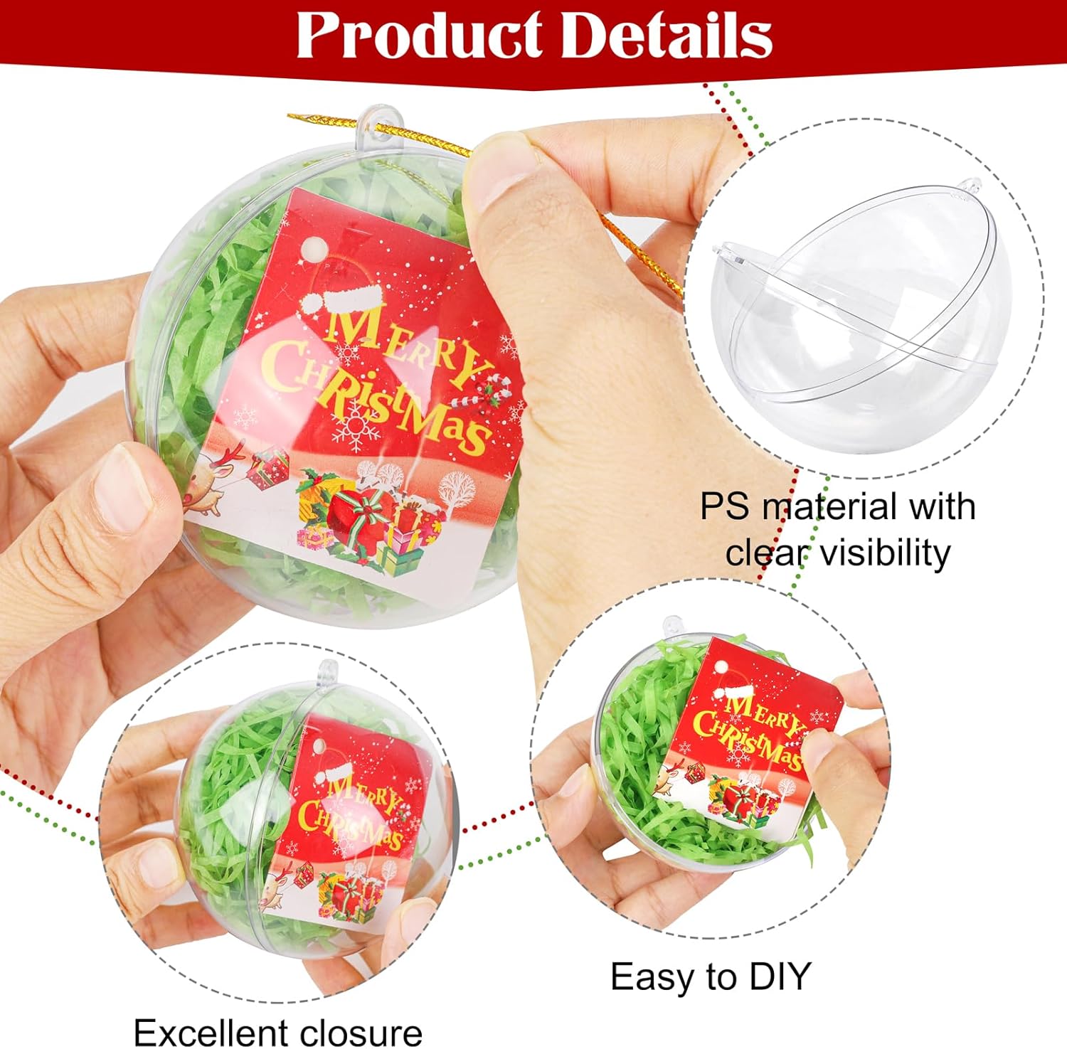 - Easy-open design: the practical design of these filling Christmas balls allows for easy placement of items inside; with a wide opening, you can easily fill these Christmas tree hanging ornaments balls with any suitable-sized objects to create your own unique DIY Christmas ornaments, and without worries about easily falling out