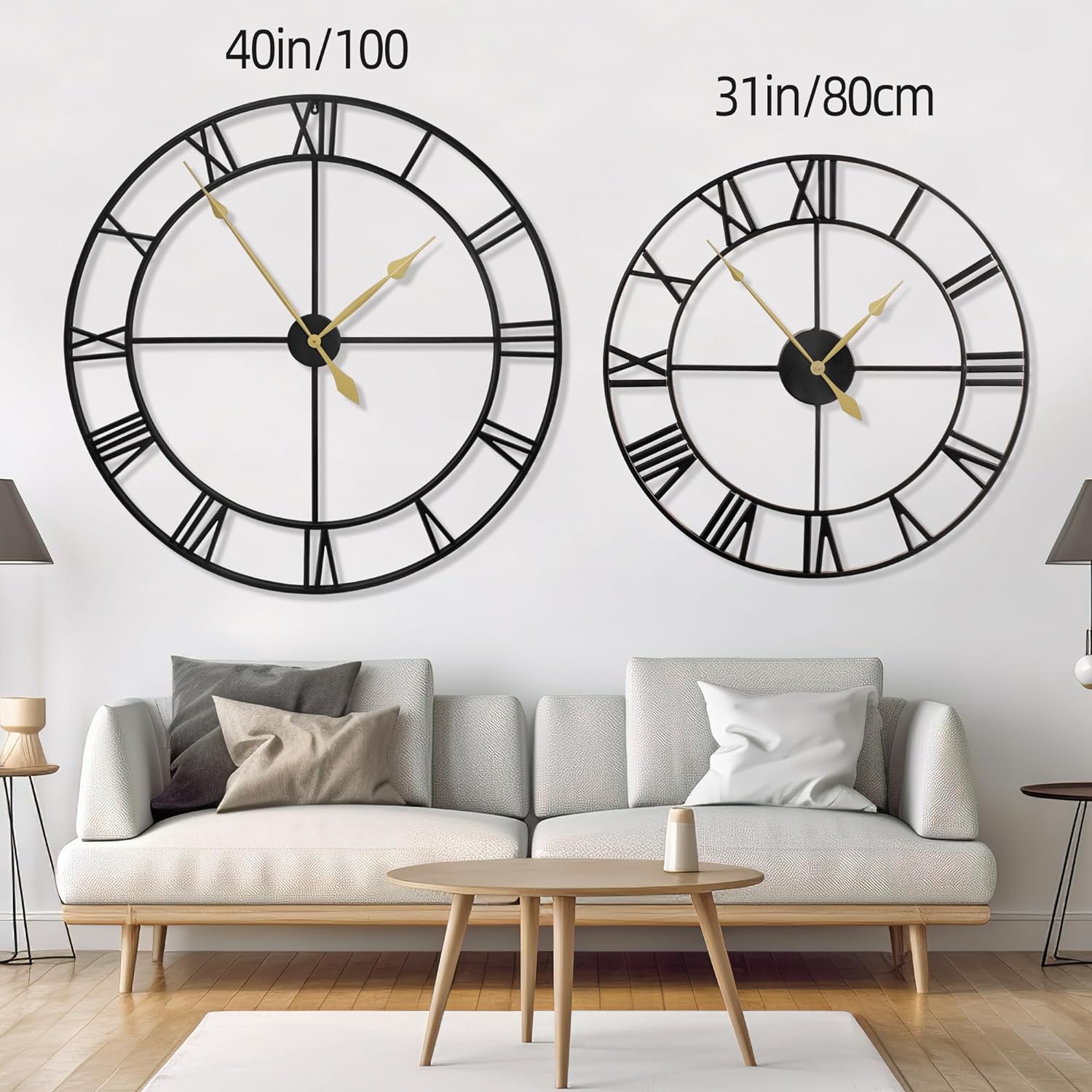 - [Modern Clock] The large metal clock has a hollowed-out retro design. The strength and retro appearance of the Roman wall clock are ensured by the use of high-quality materials in the handcrafted, solid iron frame.