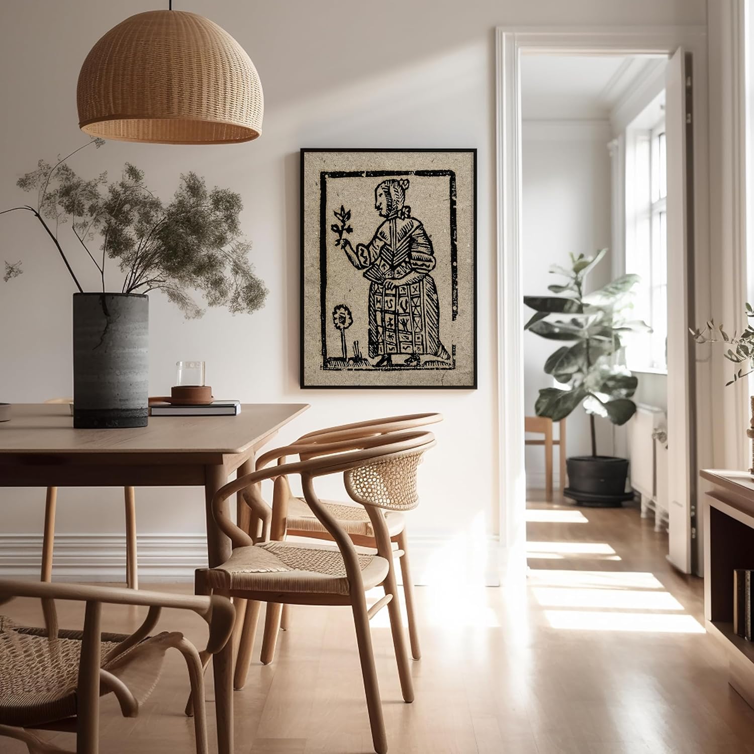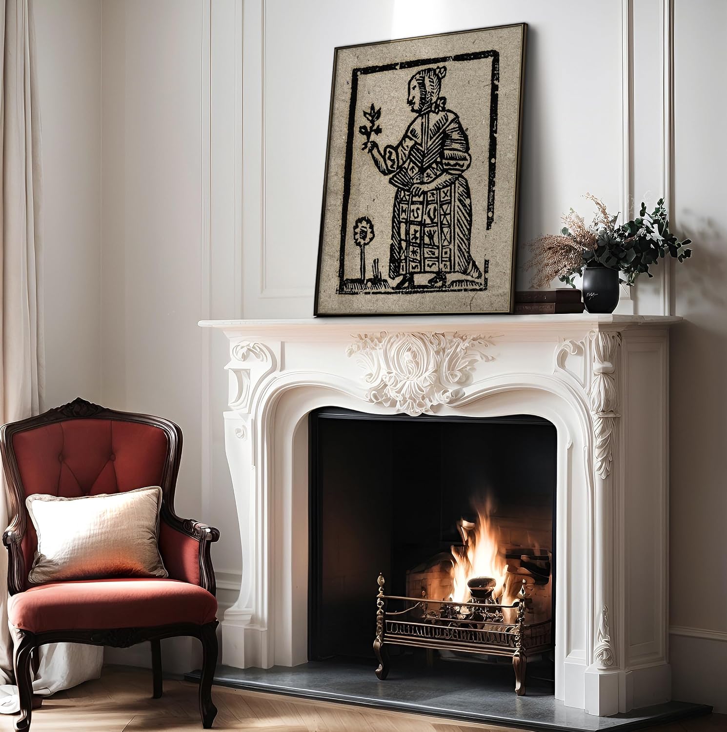 Poster Master Vintage Woodcut Poster - Retro Medieval Print - 16x20 UNFRAMED Wall Art - Gift for Gothic, Horror Fan - Witch Holding a Plant, Magic, Spell, Herbalist - Wall Decor for Bedroom, Dorm