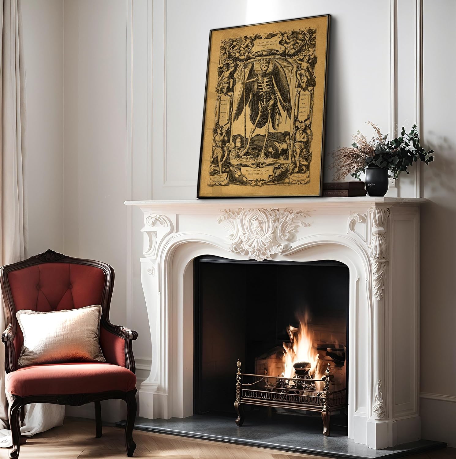 Poster Master Vintage Angel of Death Poster - Grim Reaper Print - Halloween Art - Mirror of Human Life Art - Gift for Men & Women - Gothic Decor for Living Room or Bedroom - 8x10 UNFRAMED Wall Art