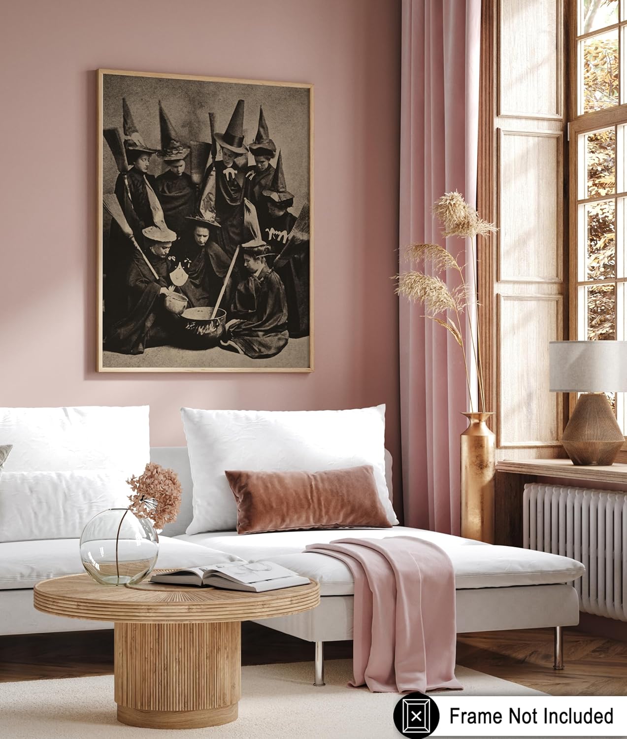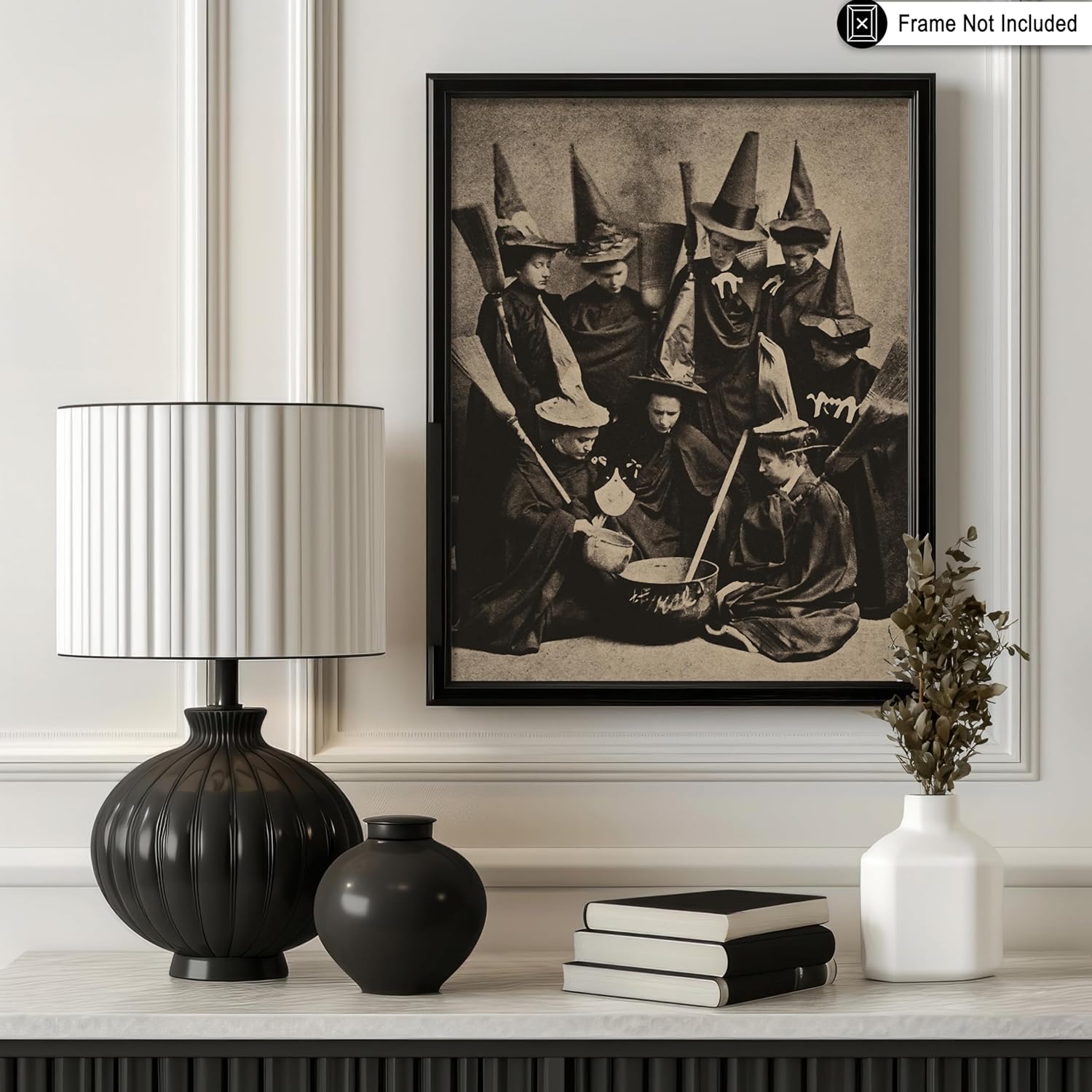 Poster Master Vintage Witches Cooking Poster - Retro Witchcraft Print - Black Magic Art - Halloween Art - Gift for Men & Women - Gothic Decor for Living Room, Bedroom or Dorm - 8x10 UNFRAMED Wall Art