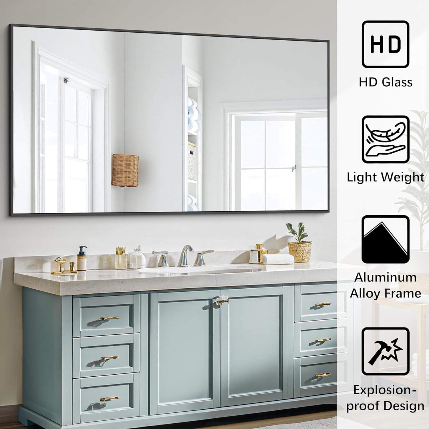 - SAFE USE: Black bathroom Mirror safety backing strengthens the glass surface, making it less prone to breakage and falling off, you can use it with confidence, the mirror design is simple, and the universal size can adorn your room well.