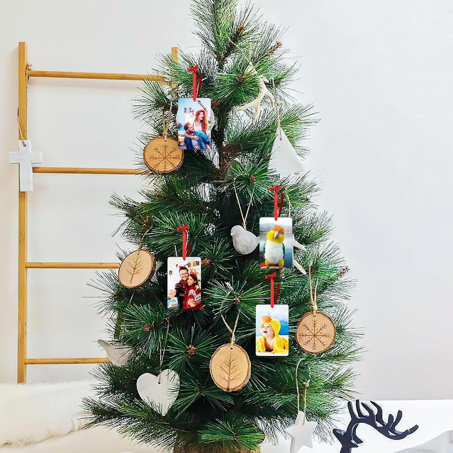 - 【Double-sided Printing Wooden Ornaments】The custom Christmas ornament is made of high-quality wood material, supports double-sided printing, easy to carry or give gift. Different from the neoprene ornaments, its printing is clearer and looks more high-end. Feature bright, high-definition printing to keep your pictures from fading. This custom photo Christmas ornament can be kept for a long time to remember your unforgettable Christmas forever.