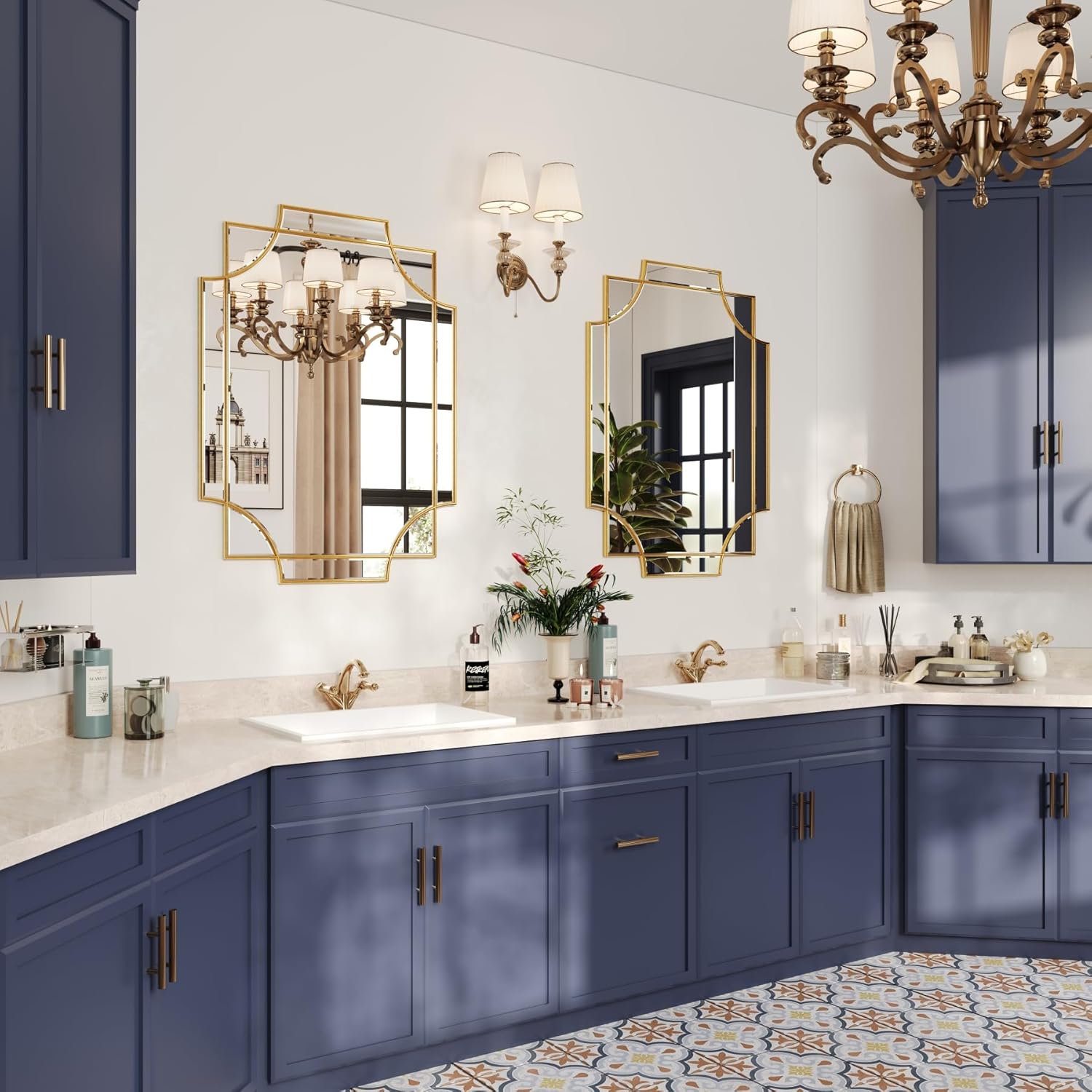 Kelly Miller Large Gold Decorative Mirror for Wall, 30"x40" Gold Bathroom Mirror Vanity Wall Mirror Rectangle Mirror Beveled for Master Bath Half Bath Living Room Bedroom Farmhouse Fireplace Hallway