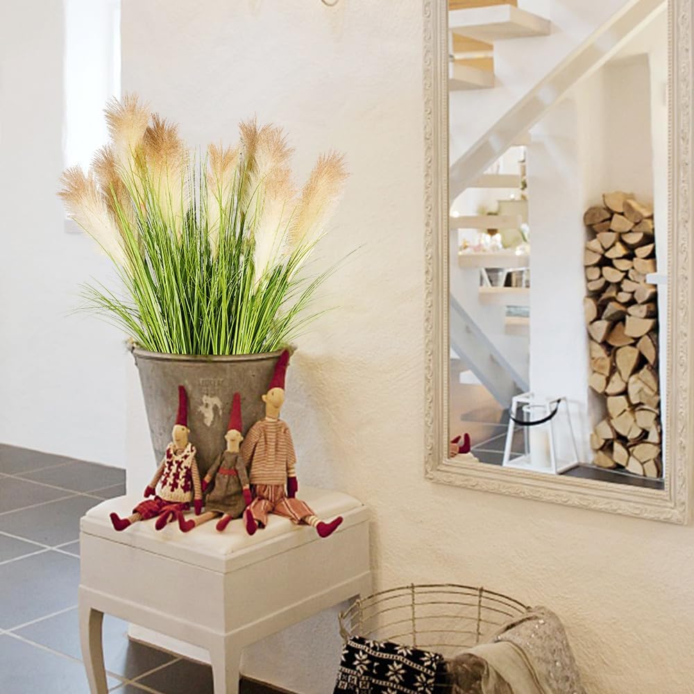 - Tall Fake Grass for Indoor Outdoor: Tall Fake grass is multi-purpose for indoor or outdoor decoration, Home Decor,floors,garden, Pathway ,dining room,bedroom,meeting room,hotel,store,anywhere you want,The fake plants especially suitable for all kinds of tall vases , large planter ceramic vase, floor vase,front porch planter,window box
