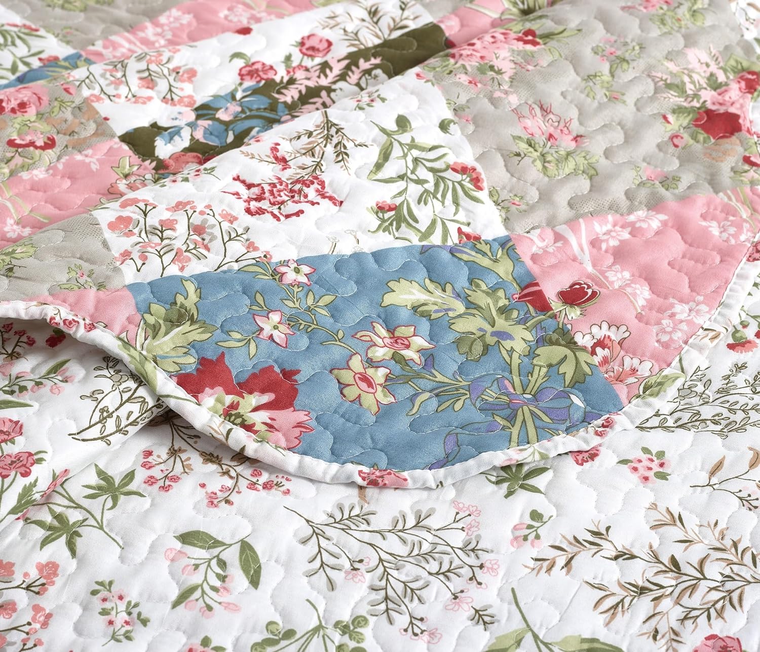 - UNIQUE DESIGN: Multi peach and olive flowers patchwork patterns, with vermicelli quilting, colorful, impressive and unique. Reverse to a coordinating pattern in multi flowers. Made to enhance decor.