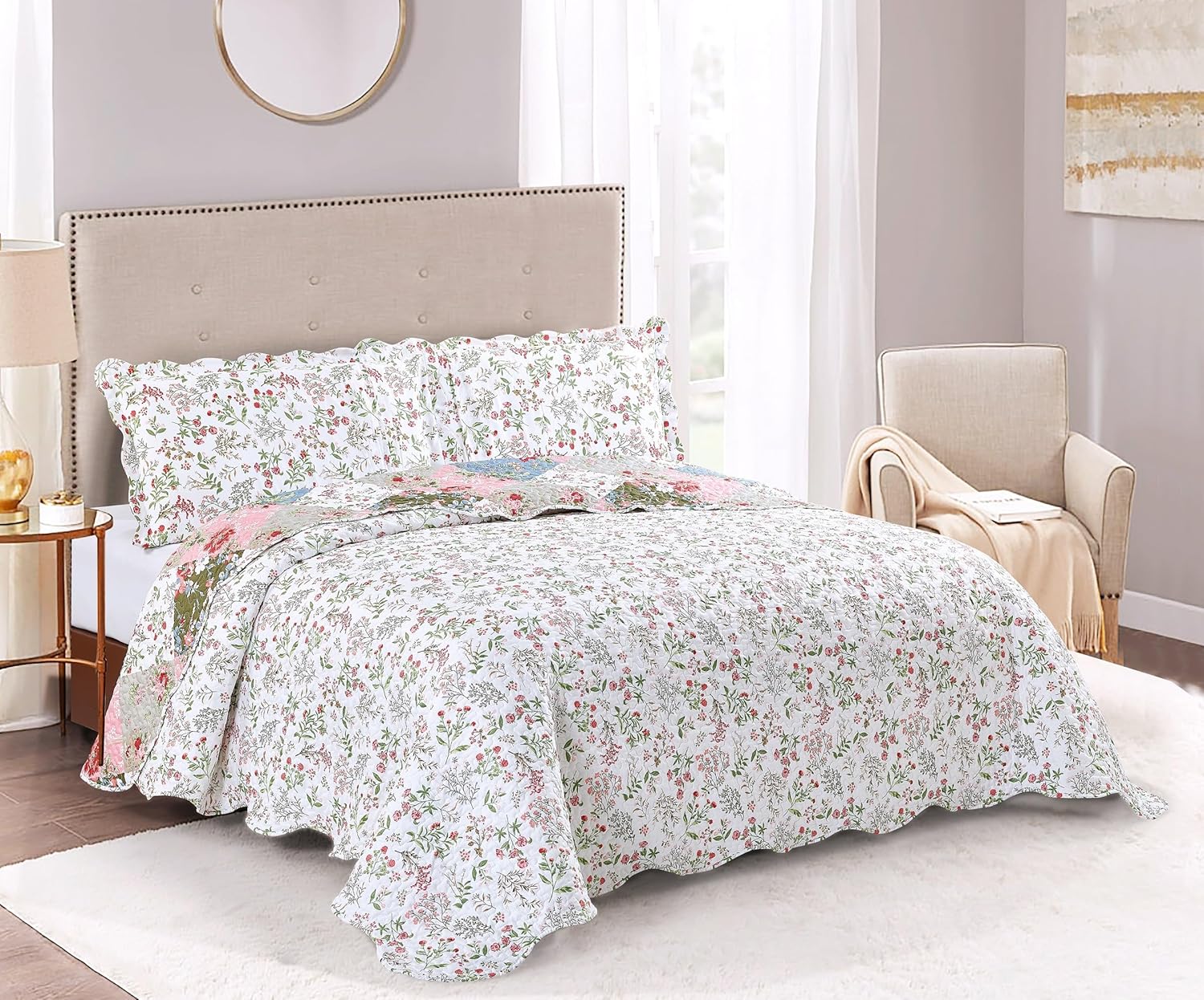 - Multiple options are available: quilt set Twin, quilt set Full/Queen, quilt set King. Matching decorative ruffle pillow shams, couch covers and couch armrest organizer are available for additional purchase.