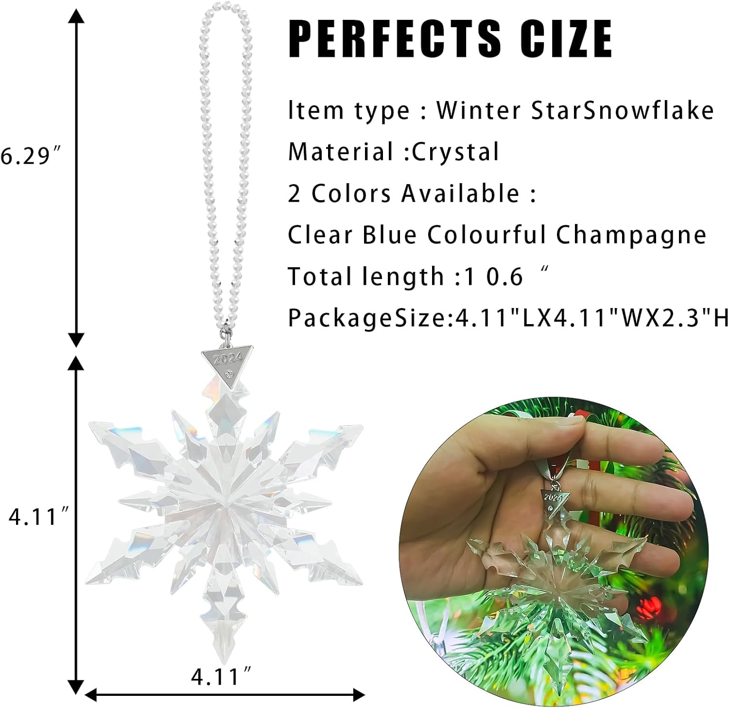- The set includes: (13.5 cm Γ 8.5 cm) snowflake decoration, 3 ribbons, 1 crystal chain and 1 gift box
