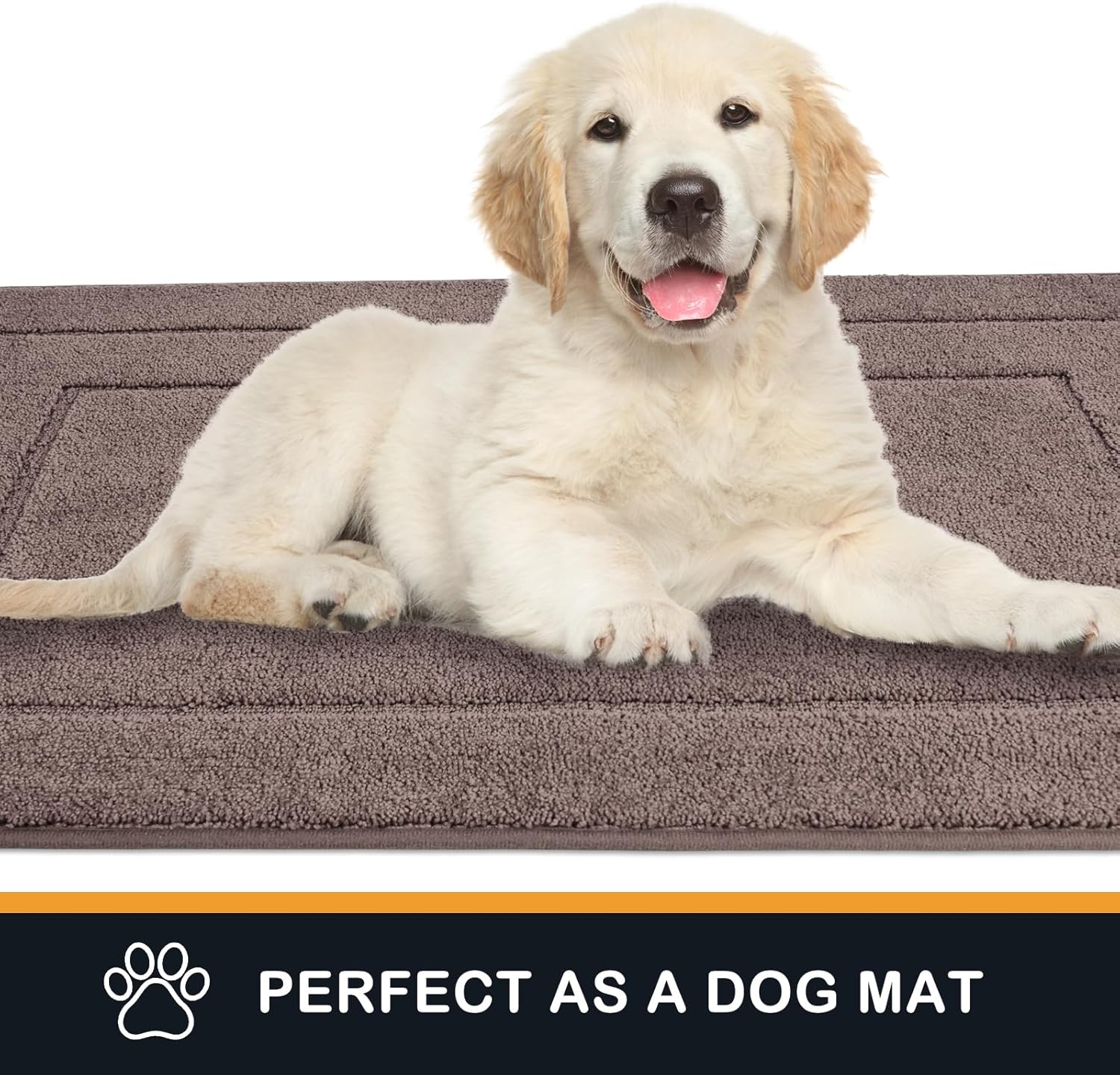 PURRUGS Dirt Trapping Door Mat 32" x 70", Non-Slip/Skid Machine Washable Entryway Rug, Dog Doormat, Super Absorbent Welcome Mat for Muddy Wet Shoes and Paws, Grayish Brown
