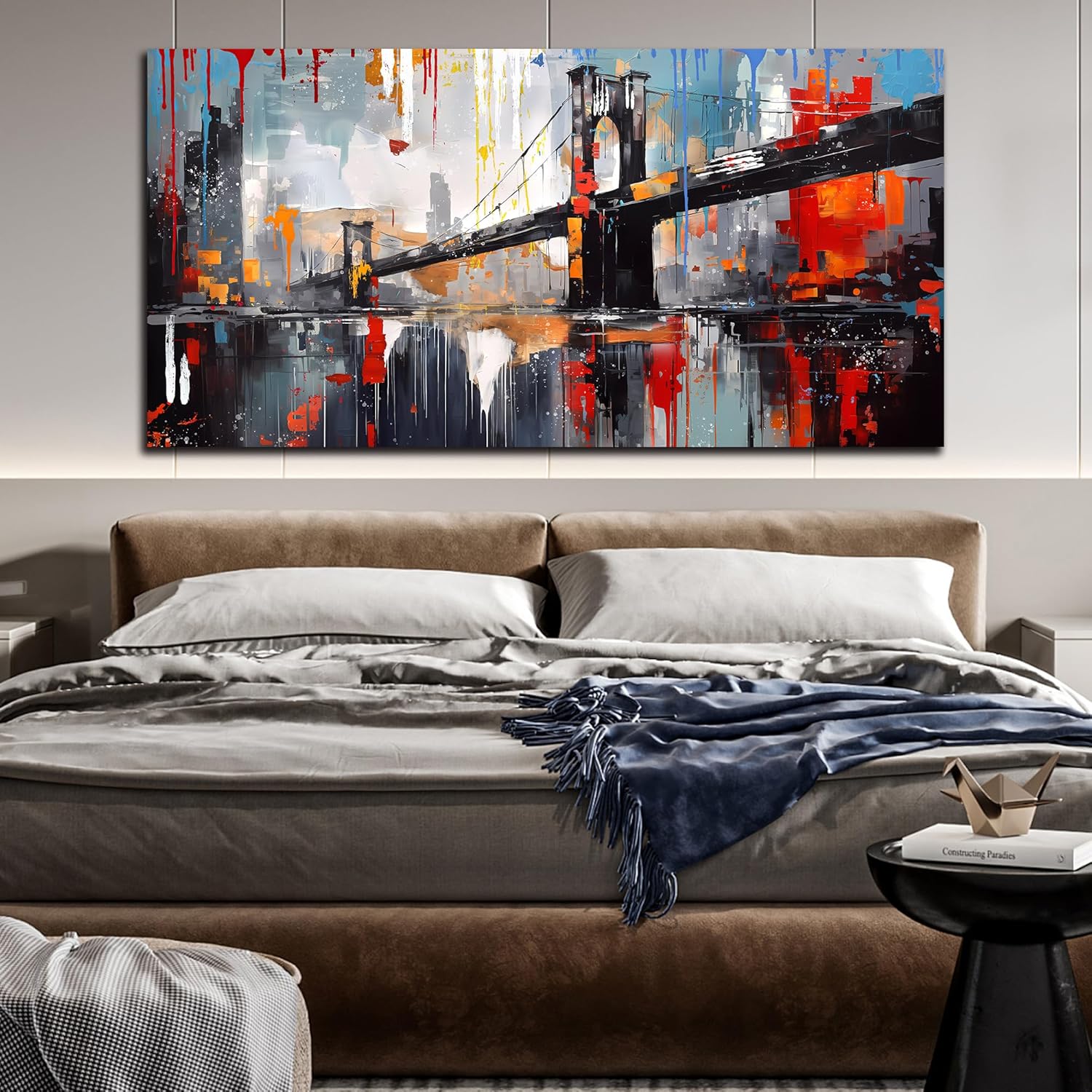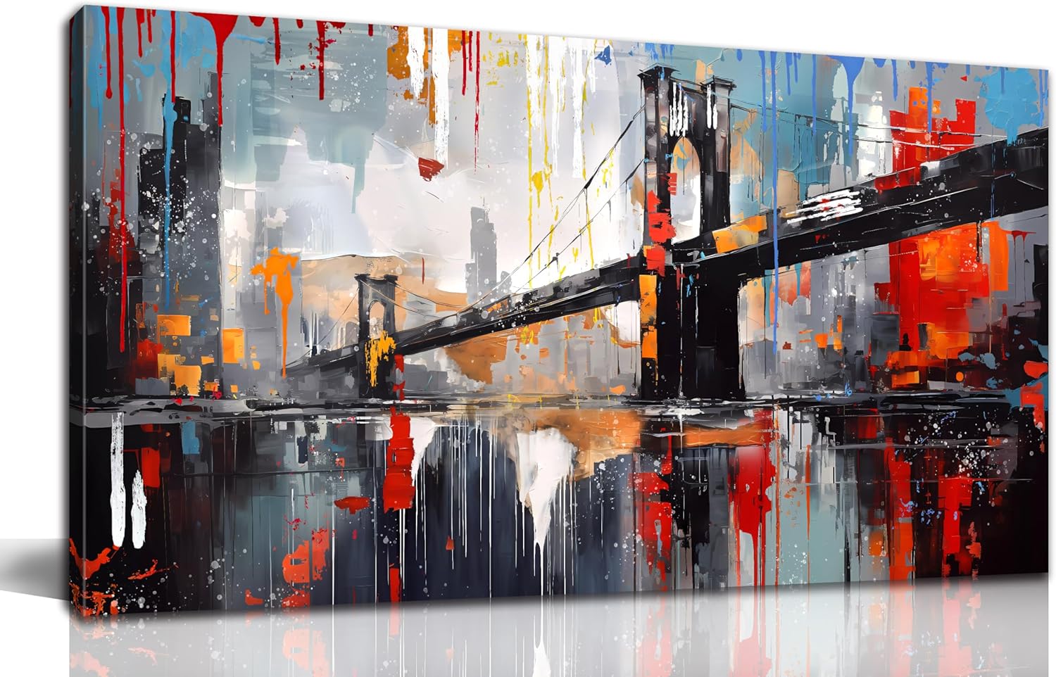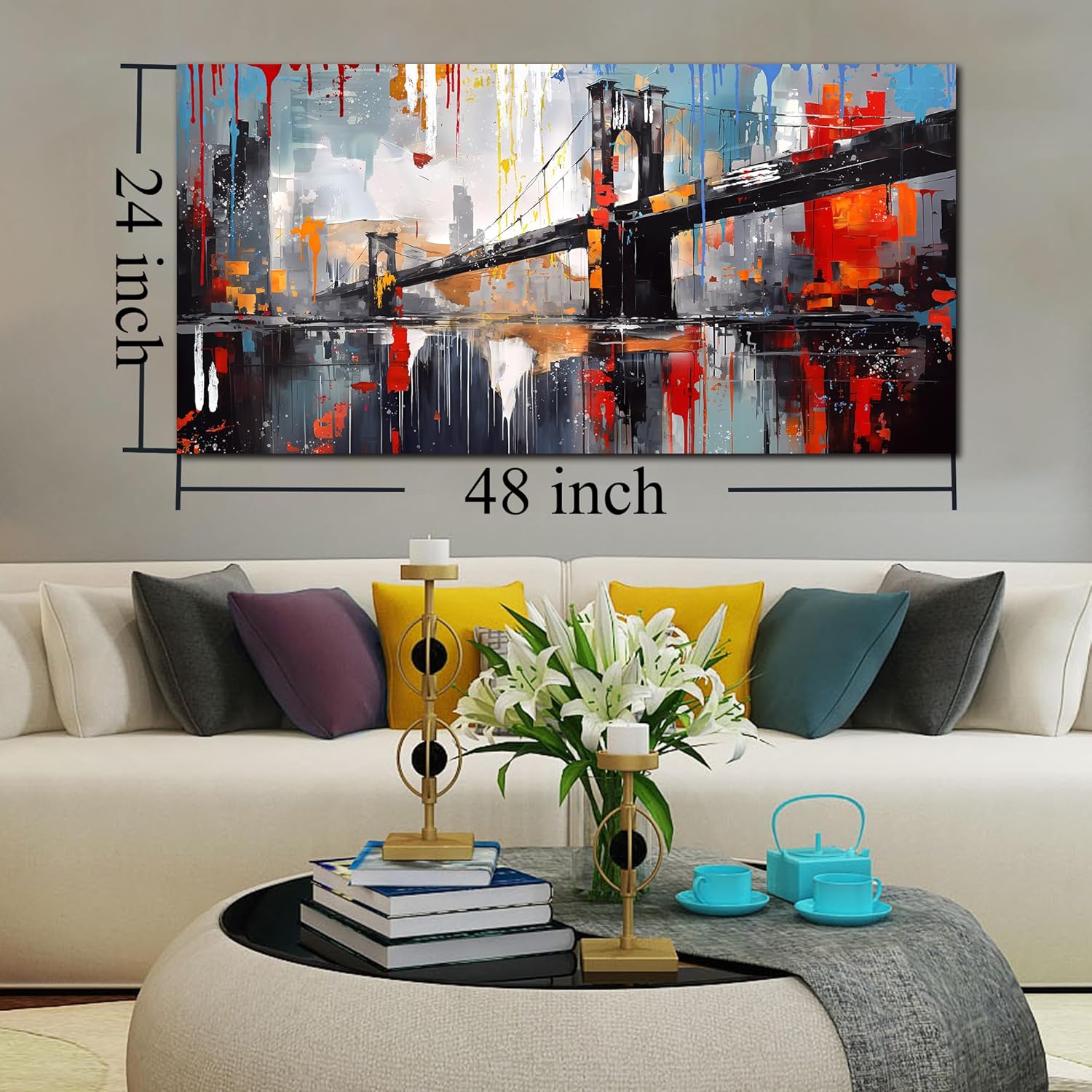 Zoyotago Large Canvas Wall Art The Golden Gate Bridge Picture Graffiti Prints Ready to Hang for Living Room Bedroom Office Modern Home Decor Size 24x48