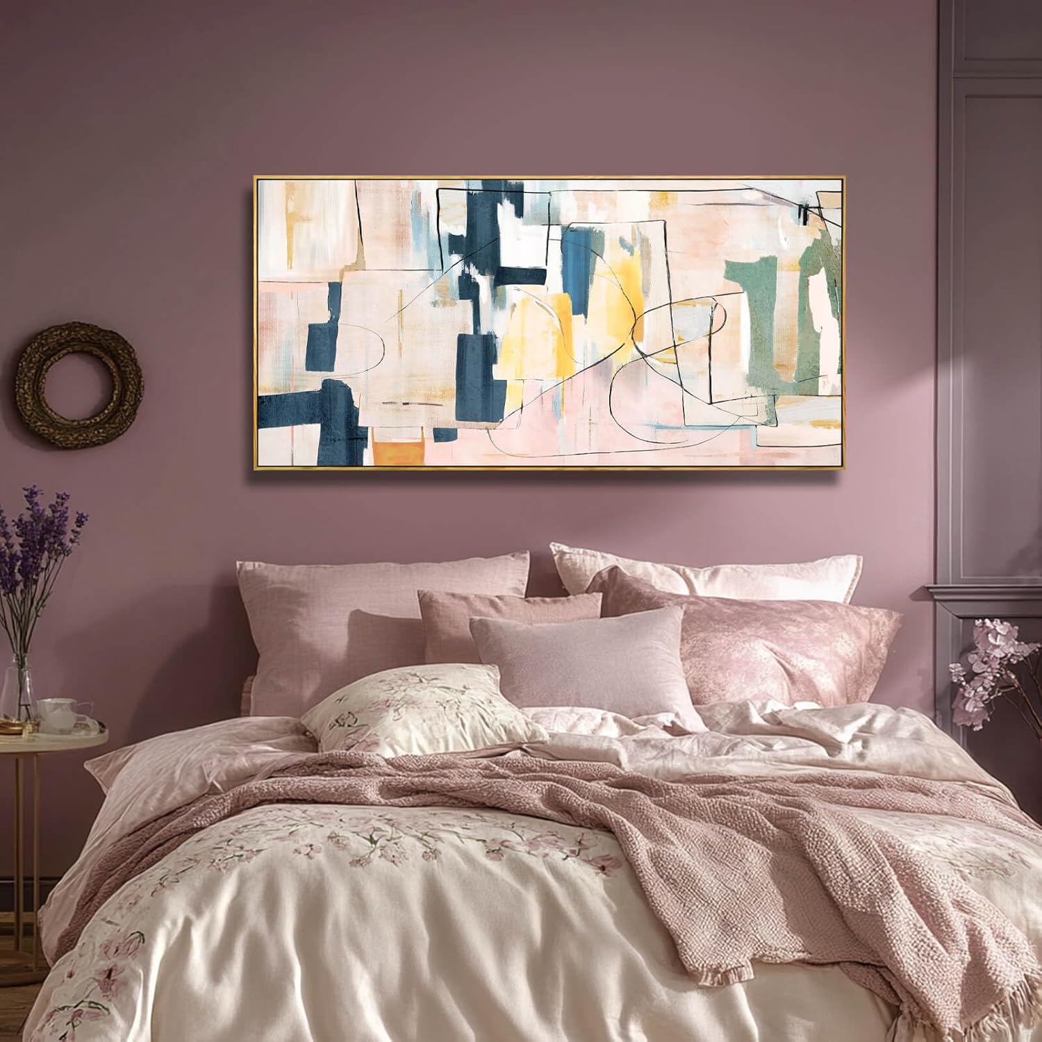 Large Abstract Canvas Wall Art Pink Painting Yellow Bedroom Decor Navy Art Photo Prints Minimalist Pictures Poster Artwork 20"x40"