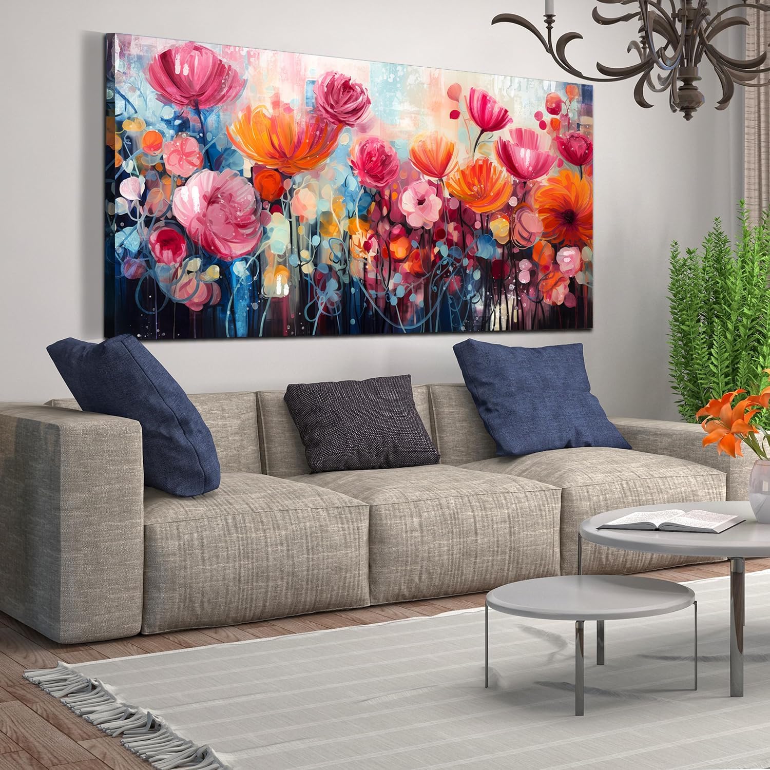 - FLOWER WALL ART CANVAS: The theme of this wall art prints is “Pink Flower Sea”. It make your room more romantic. There are many themed art wall decor in our store, such as cute animals, flowers, abstract art, graffiti, etc