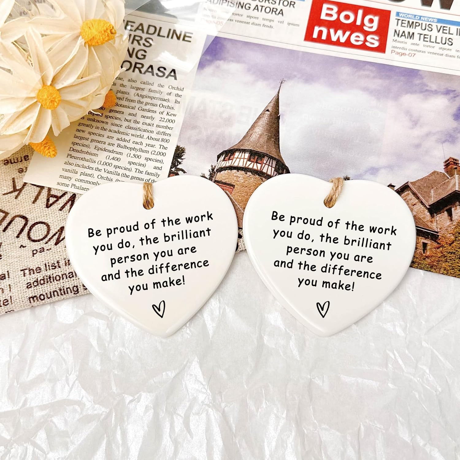 - 【Easy To Hang】This heart shaped ornament set comes with a free hanging string, delicate and compact, you can hang this ceramic keepsake gift on the Christmas tree, refrigerator, door, window, wall, bag or anywhere you want to hang it. This ornament is great home decorations, which can create a wonderful and cozy atmosphere for your home.