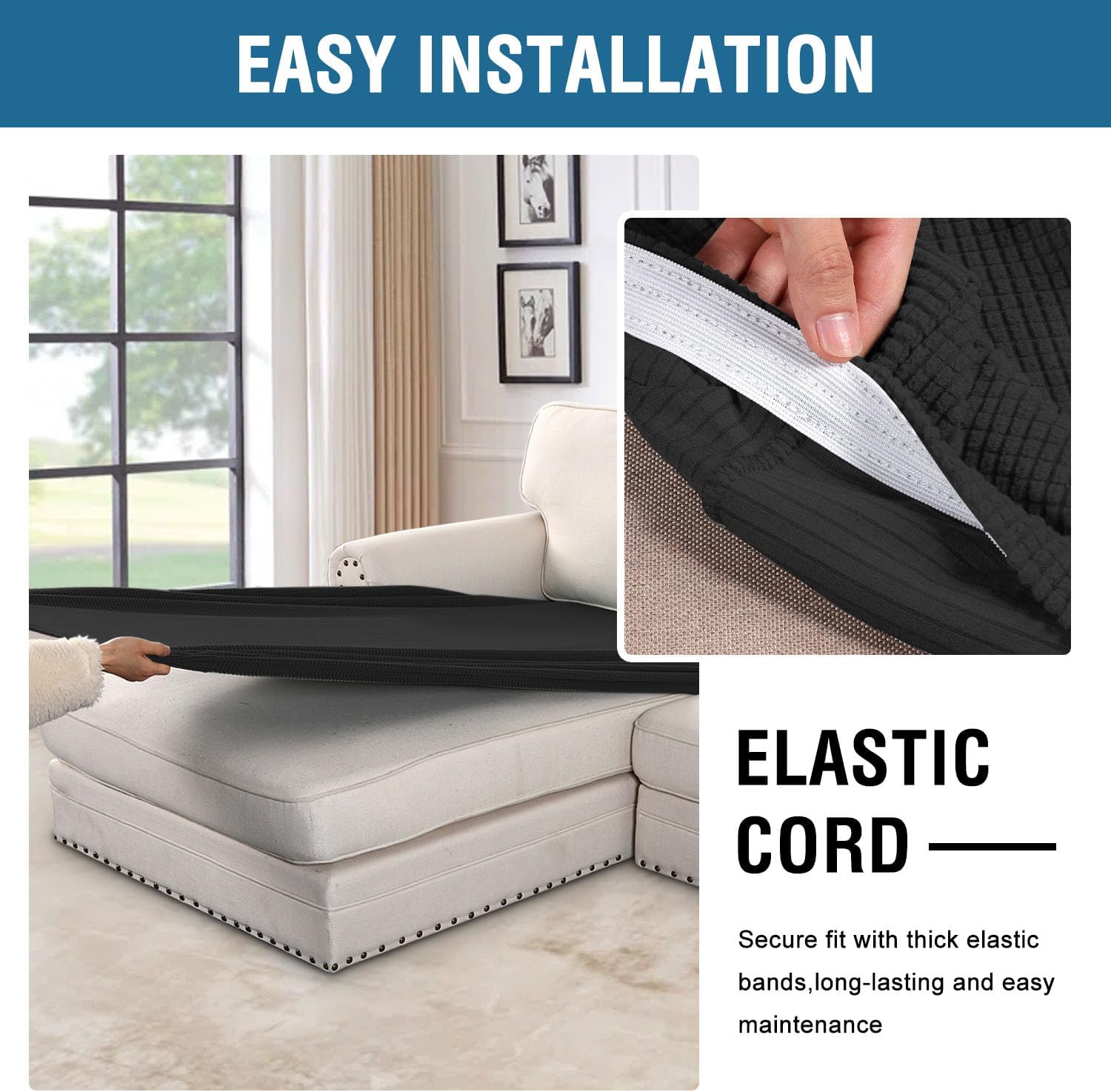 - GREAT FIT: Set of 1. This innovated cushion slipcover is crafted from durable and soft high stretch knitted jacquard fabric. Chaise Lounge Cover for Both Left/Right L Shaped Couch(fits up to 33-37 inch width, 55-61 inch depth, 3-8 inch thickness). Feature one-size-fits-most, kindly measure before ordering