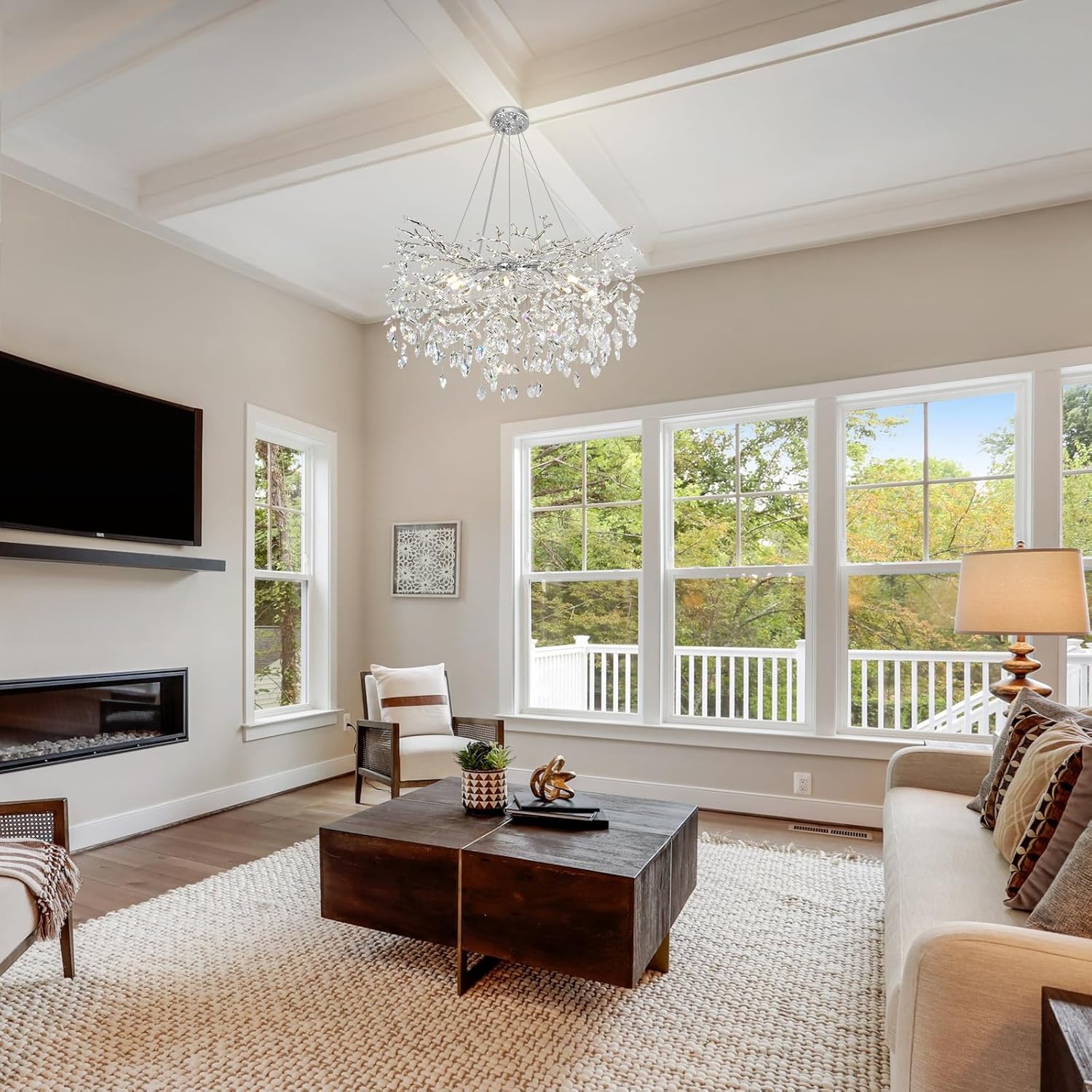 - Modern Crystal Chandelier:Transform your living space into a captivating masterpiece with our Elegant Crystal Tree Branches Chandelier. This stunning chandelier is designed to impress, featuring a unique tree branch-inspired design adorned with glistening crystals that cast a mesmerizing play of light and shadow.