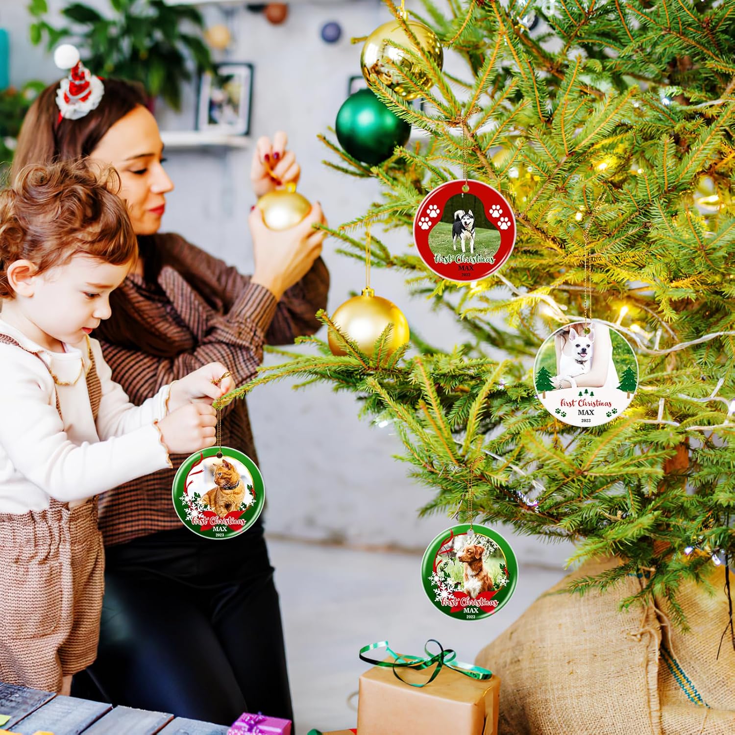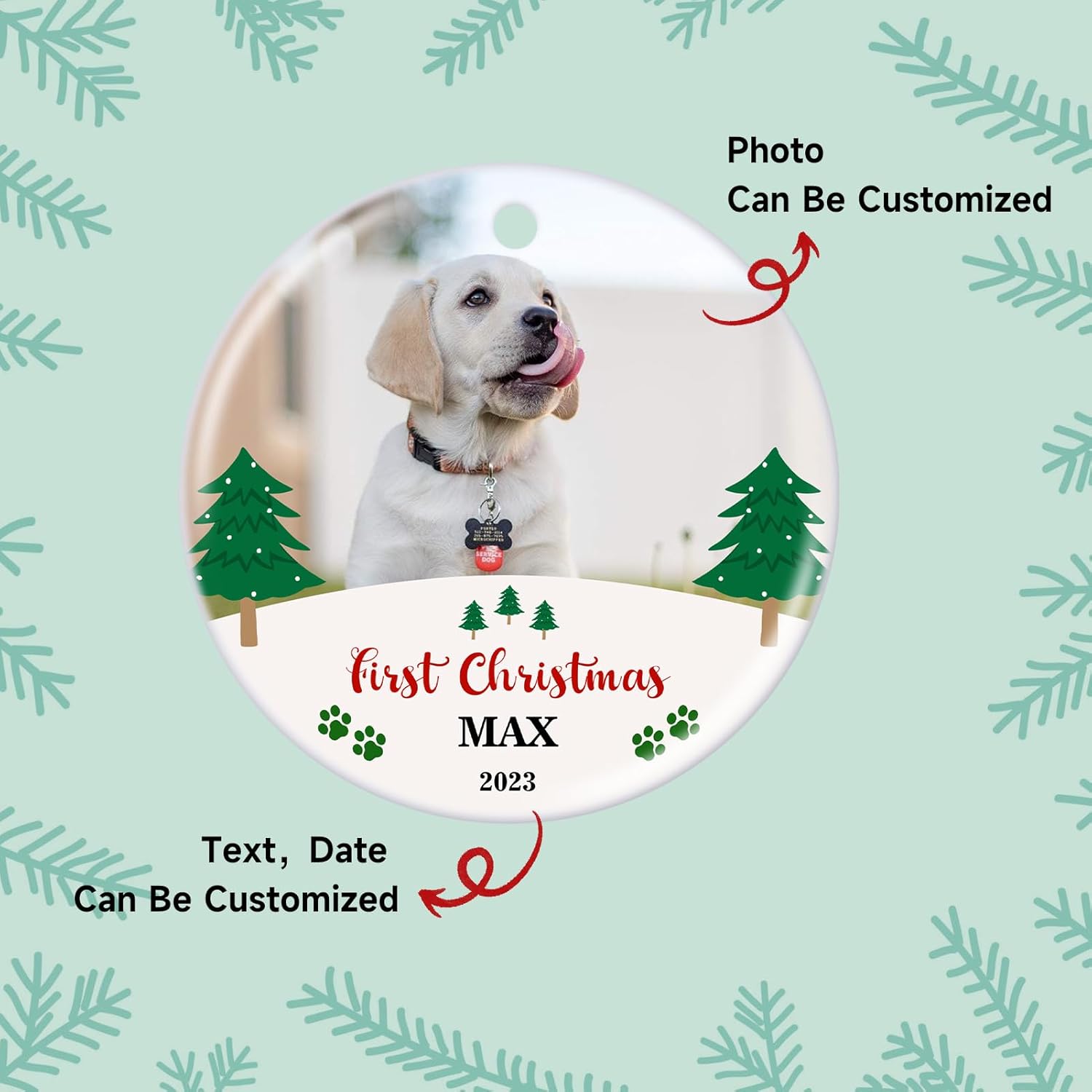 - 【Personalized Pet First Christmas Ornaments】 Custom pet first Christmas ornament can help you keep the treasured memories with your puppy cat, Please record those invaluable moment with your fur friends. Celebrate you pet baby first Christmas with this cute hanging ornament